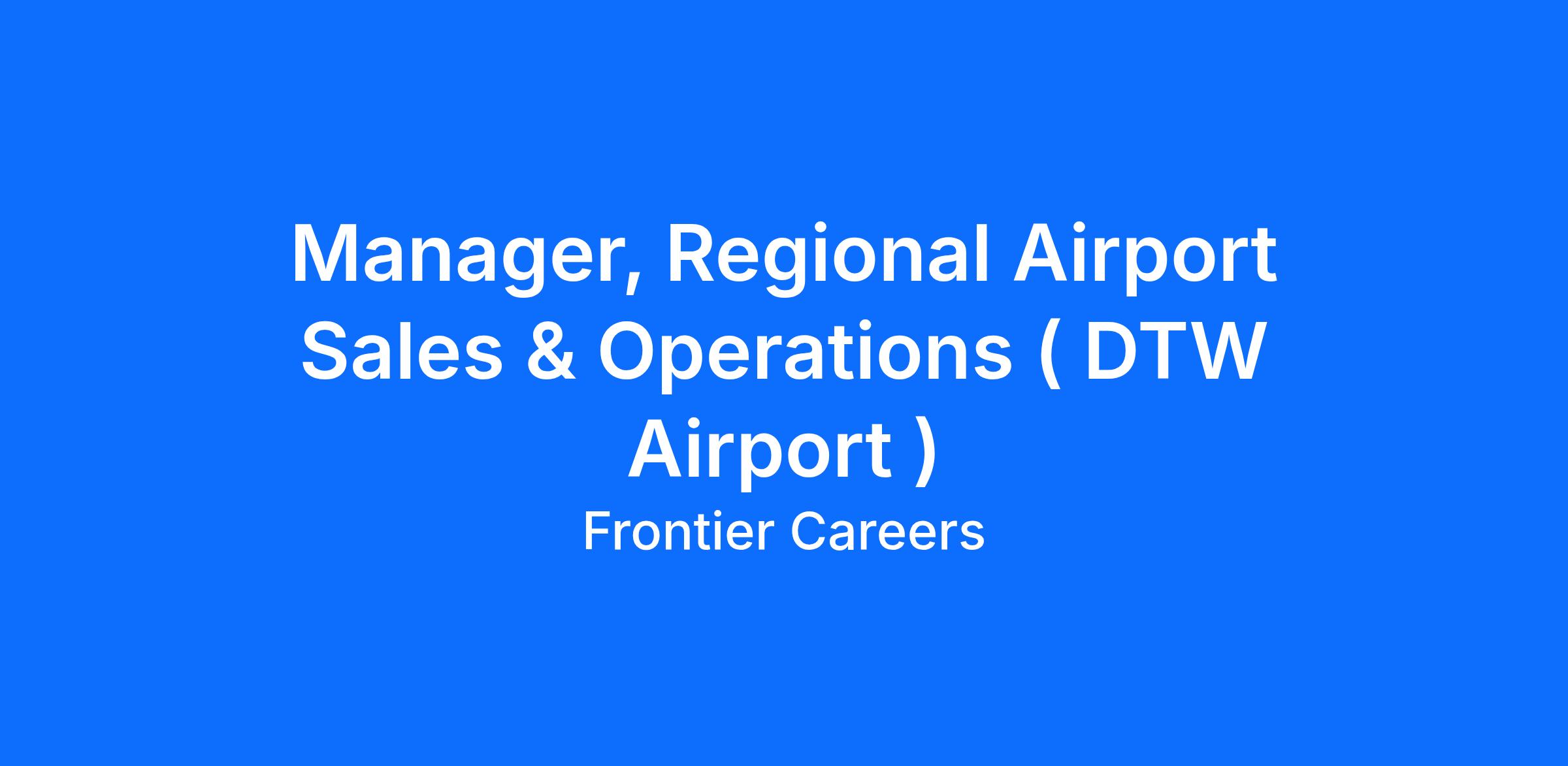 Based in a Frontier station with a number of daily operations, the Regional Manager of Airport Sales & Operations is responsible for delivering outstanding and safe operational performance, customer service, and financial performance in a number of Frontier airport locations. The Regional Manager of Airport Sales & Operations is the primary Frontier representative to both the airport and business partner for the stations within their region. In addition to daily operations, this position oversees seasonal and new station openings and seasonal closures of stations. The Regional Manager of Airport Sales & Operations reports directly to the Director and has regular / daily interaction with Frontier officers and directors.