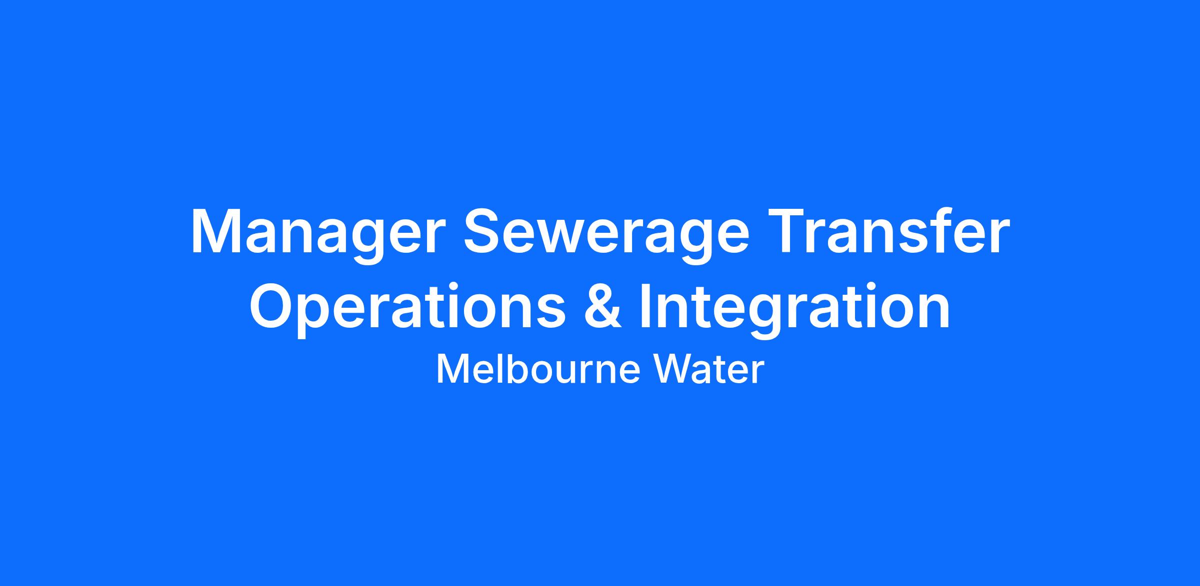 For more information, please review the attached position description: Role Mandate - Manager Sewerage Transfer Operations and Integration.pdf