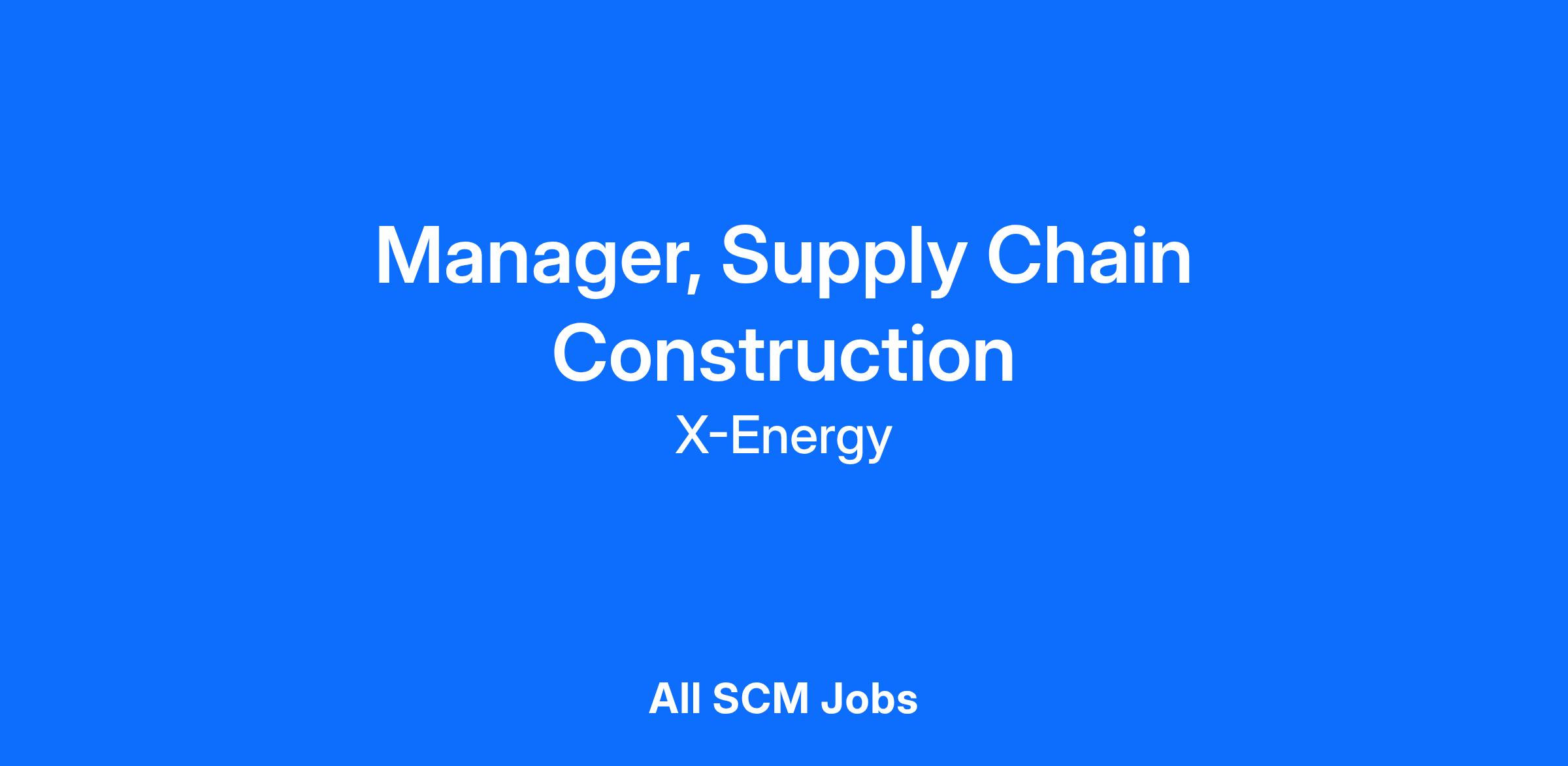 X-energy LLC is hiring a Supply Chain Construction Manager to support its Procurement team. This role supports the strategic direction and implementation of the Supply Chain Process and serves as a primary liaison with Key Suppliers and company stakeholders. The role manages multiple supply chain functions within the plant design, construction, and across our business operations.