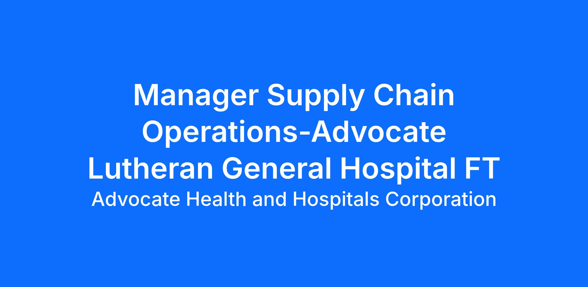 11503 Enterprise Corporate - Supply Chain: Operations Lutheran General Hospital