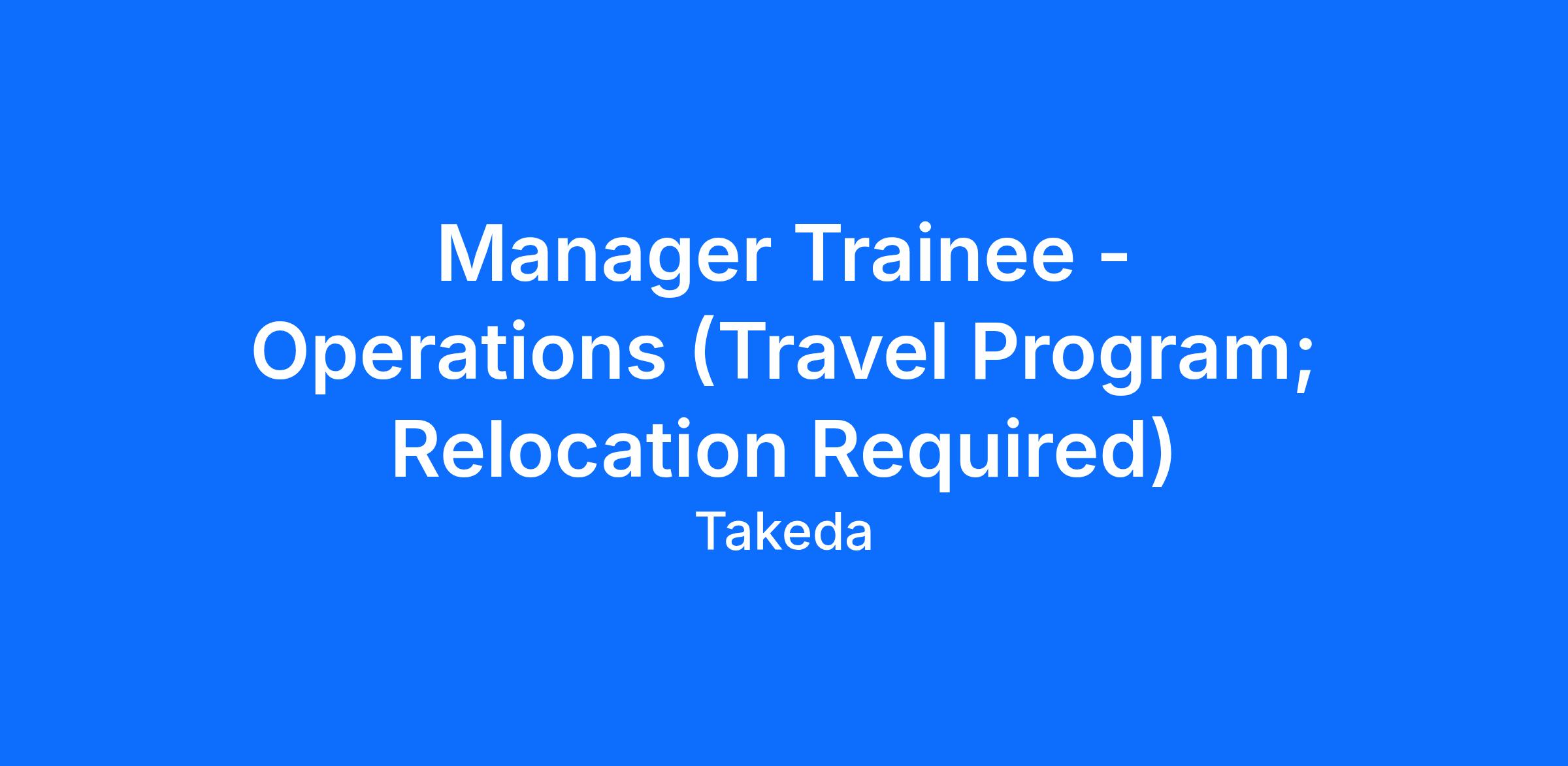 Manager Trainee - Operations (Travel Program - Relocation Required)
