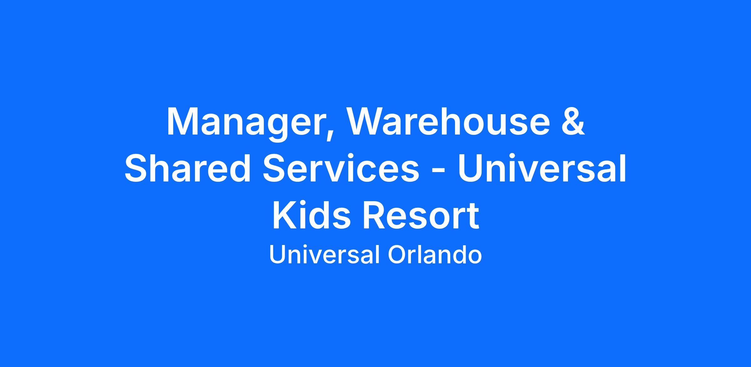 Responsible for leading the Warehouse, Mail Room, Visual Merchandising and Shared Services teams as well as establishing and maintaining all standards and practices of these operations for Universal Kids Resort (UKR). Oversees the Warehouse operation inclusive of receiving, storing and shipping of all goods and related supplies by the specific departments. Oversees Mail Room operation which includes receiving and shipping of packages and distributing/delivering mail to offices around the resort. Coordinates flow of goods from onsite and offsite locations. Maintains Shared Services systems and support for inventory, recipe control, ingredients, menus, pricing, and discounts. Ensures Visual Merchandising standards are upheld and are in alignment with Universal Destinations & Experiences (UDX).