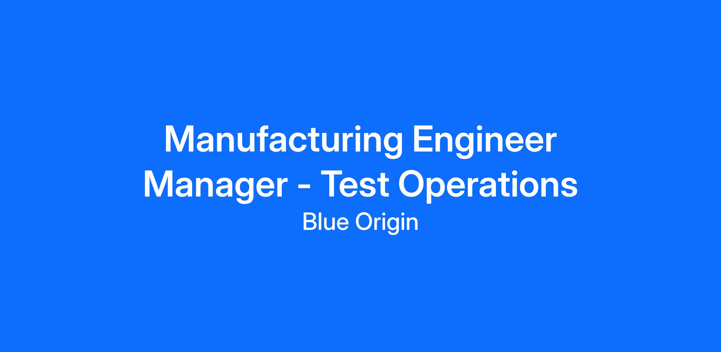 This role is part of Blue Origin Operations, which is comprised of Integrated Supply Chain, Test Operations, Safety, Quality, and Mission Assurance. This includes Manufacturing and Supply Chain support across all Blue Origin facilities.We are seeking an experienced Manager of Manufacturing Engineering to lead a team dedicated to advancing human spaceflight through innovative manufacturing solutions. In this key role, you will oversee the development and implementation of manufacturing processes - including design for manufacturability, work instruction creation, tooling procurement support, process planning, and configuration of efficient work cells. You will work collaboratively within integrated product teams, partnering closely with design, quality, tooling, facilities, logistics, operations, and project management functions to deliver high-quality hardware on aggressive timelines.