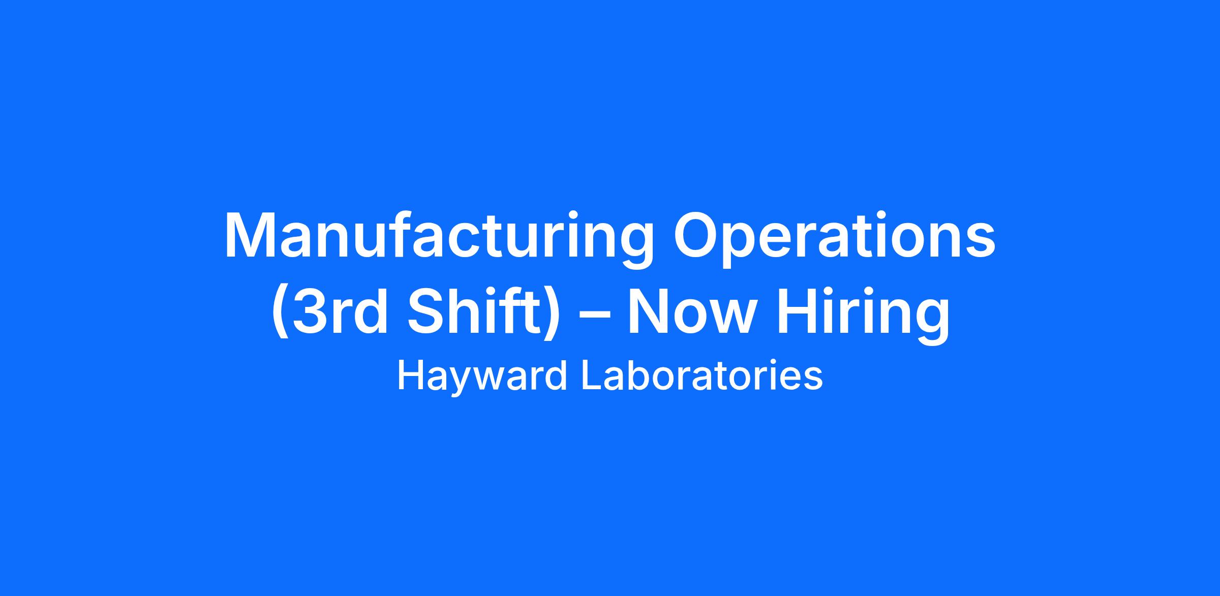 Hayward Laboratories Inc. is a leading manufacturer of high-quality beauty and cosmetic products, committed to innovation, safety, and excellence. We take pride in delivering products that enhance confidence and well-being. Join our 3rd Operations Team and be part of creating products that make a difference.