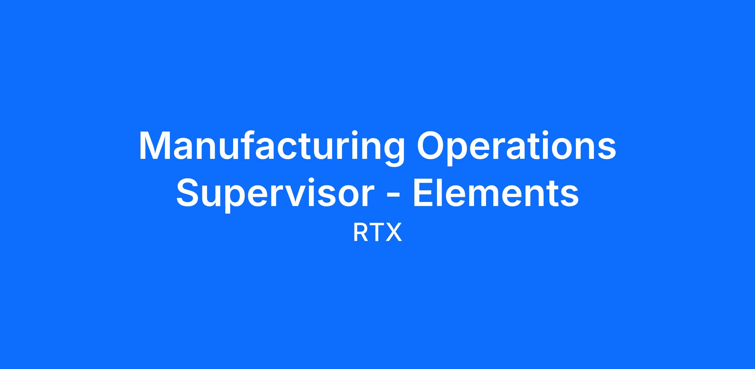 Not RequiredThe Manufacturing Operations Supervisor is a leadership position critical to the success of our manufacturing operations team. You will lead and motivate a team of professionals setting goals and driving achievement. You will manage cell productivity, guide scheduling & sequencing of work, and foster a collaborative, achievement driven environment. You will approach each day with a continuous improvement mindset to identify opportunities for innovations optimizing production.