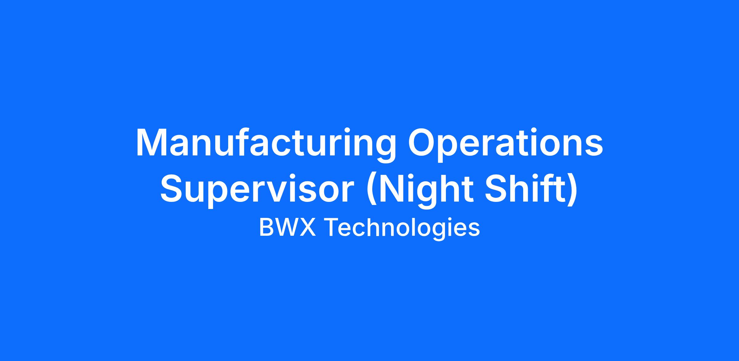 As a Night Shift Manufacturing Operations Supervisor at the BWXT Jonesborough site (NOGJ), you will be responsible for providing direction and supervisory oversight for night shift operations to include planning and organizing work assignments. This position will provide technical and production oversight for activities and staff, oversee and coordinate the manufacture of high technology products that conform to contractual and Company requirements for performance, reliability and any special characteristics, and conditions that may apply, analysis, evaluation and solution of technical problems encountered in the application of manufacturing methods, facilities, processes, material and tooling incident to the fabrication of products. You will be responsible for providing direction to ensure safe, compliant operational control is maintained and that proper and immediate notification is provided to management for abnormal conditions, events, technical problems or issues are encountered.