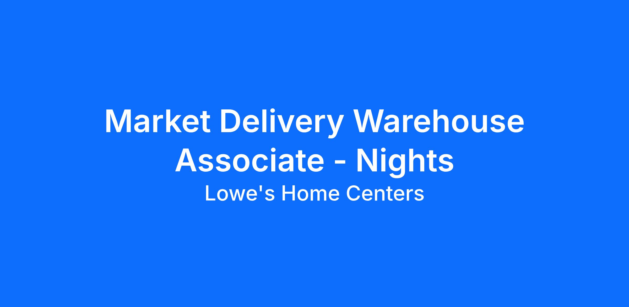 Market Delivery Warehouse Associates are responsible for unloading and staging XDT deliveries, managing inventory by utilizing warehouse management system (WMS), assembling products, and maintaining a clean and safe work environment. To be successful, this associate must be organized and detail oriented.