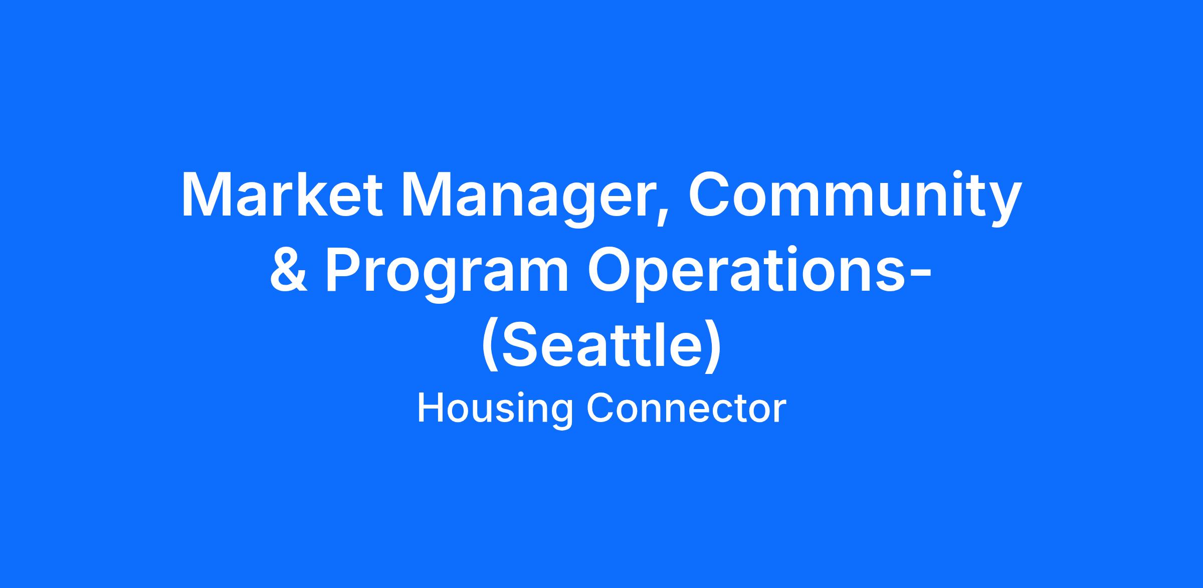 In Seattle, this role focuses on strengthening and scaling an established market by driving housing outcomes, deepening partnerships, and ensuring consistent, high-quality operations.