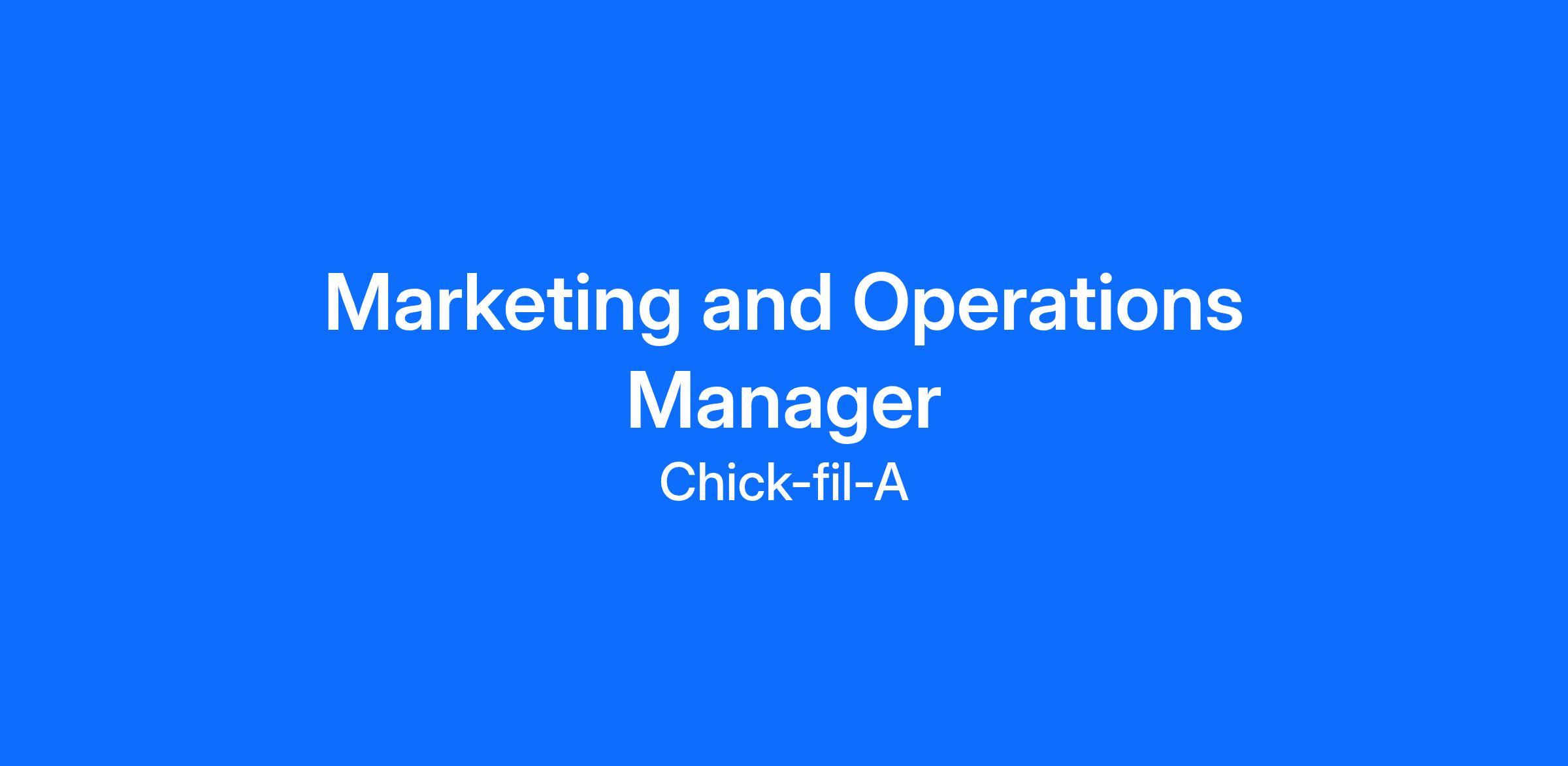 Chick-fil-A is hiring a highly skilled Marketing and Operations Manager