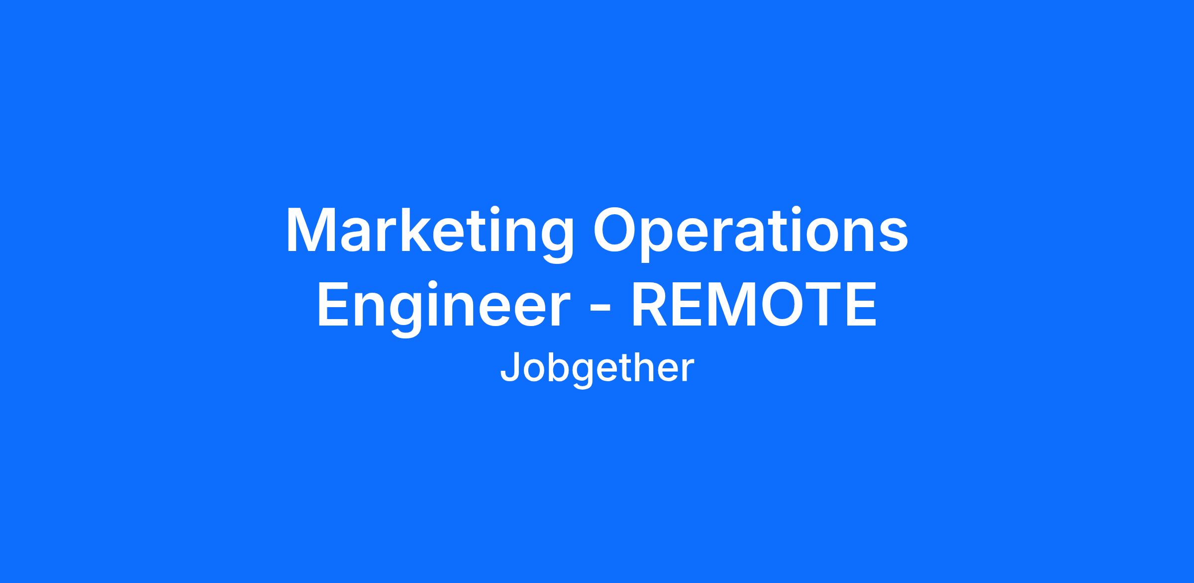 Marketing Operations Engineer - REMOTE