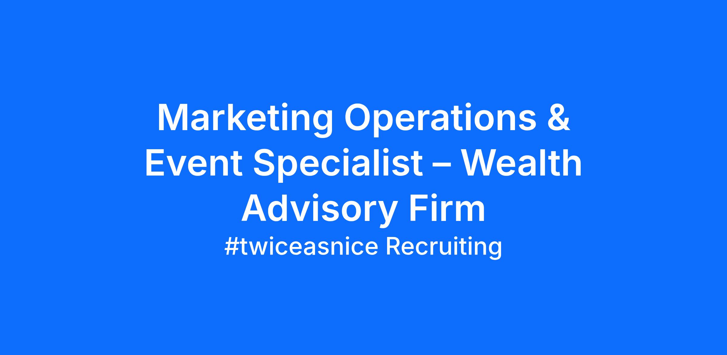 Marketing Operations & Event Specialist – Wealth Advisory Firm Description