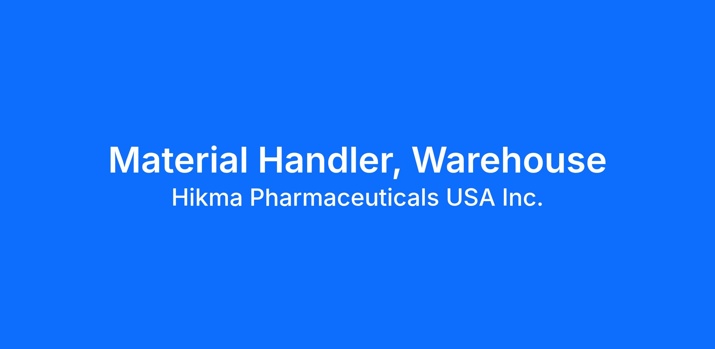 We are committed to building a diverse and inclusive team and encourage applications from candidates of all backgrounds. We are seeking a talented and motivated Material Handler, Warehouse. In this role, you will be responsible for the delivery of materials to support production activities including but not limited to filling and packaging components to filling room windows and packaging lines, as well as, the removal of finished goods and W-I-P to support the manufacturing process.