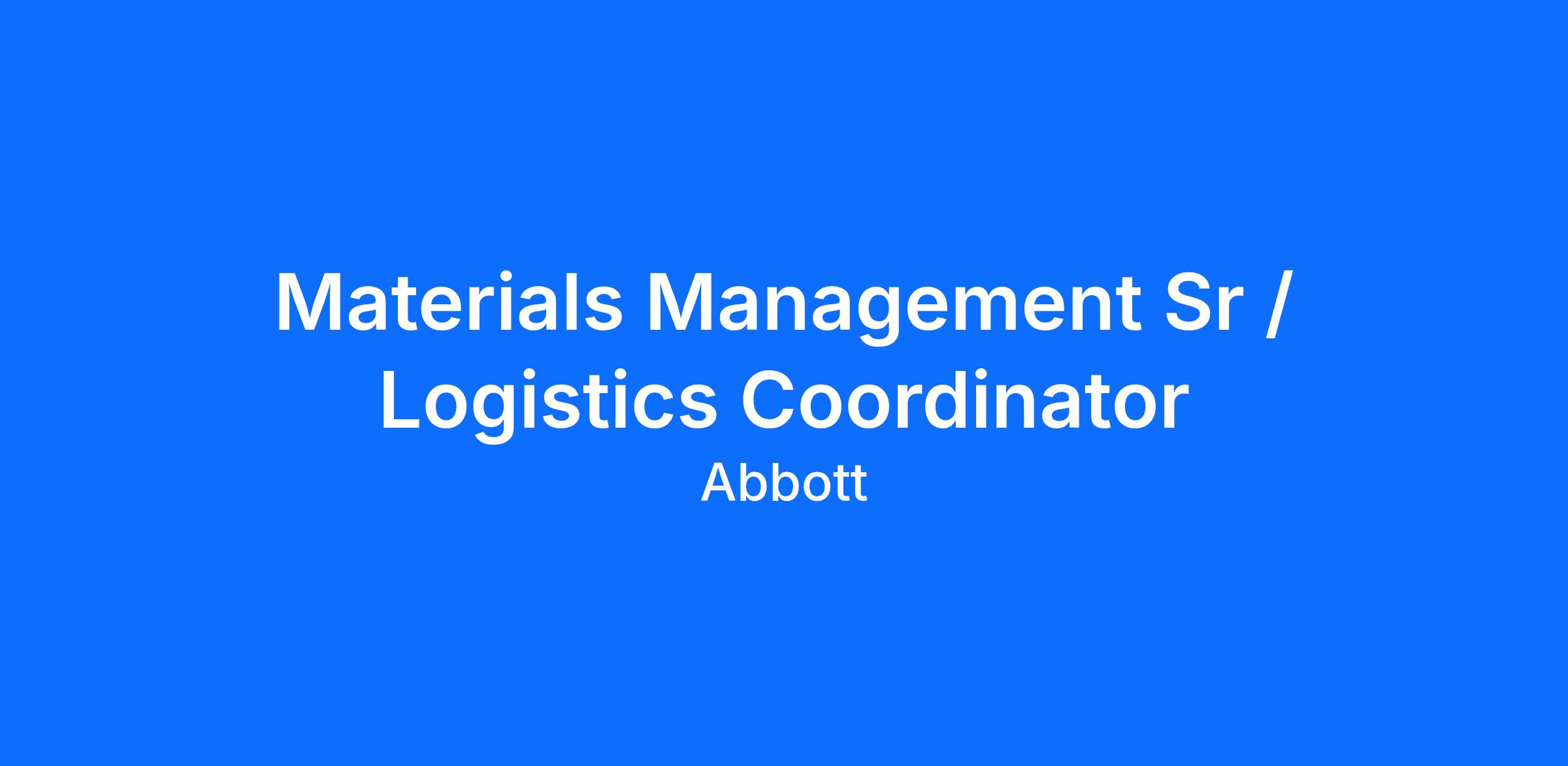 Title: Materials Management Sr. / Logistics Coordinator