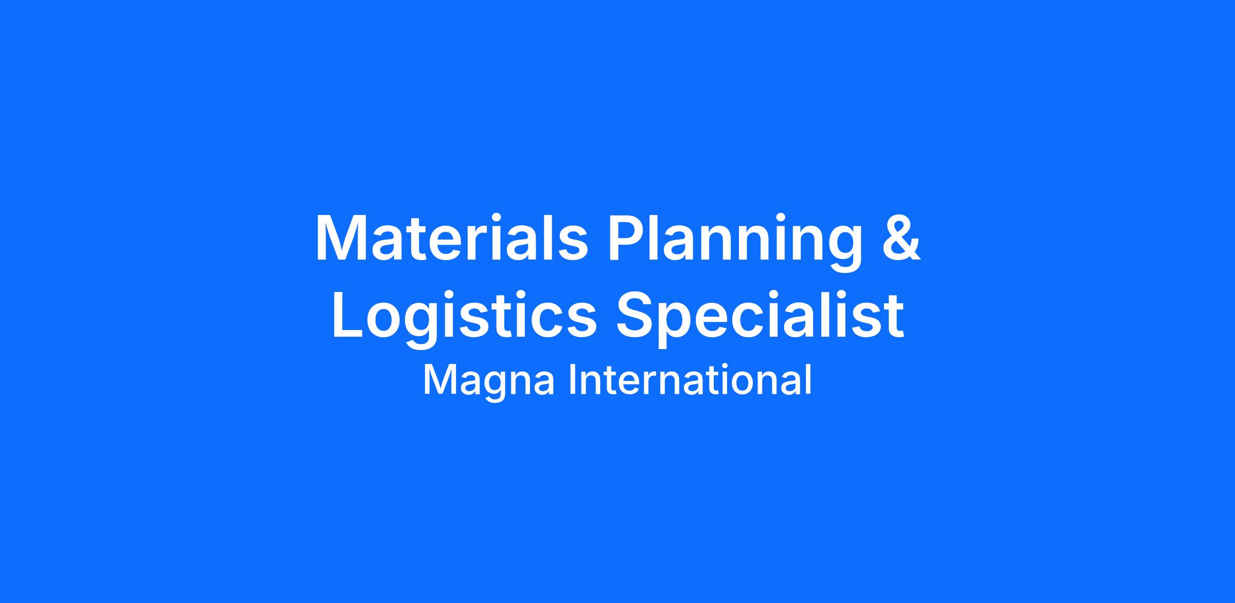 - Participate in the APQP process to represent Materials and Logistics for launching programs.