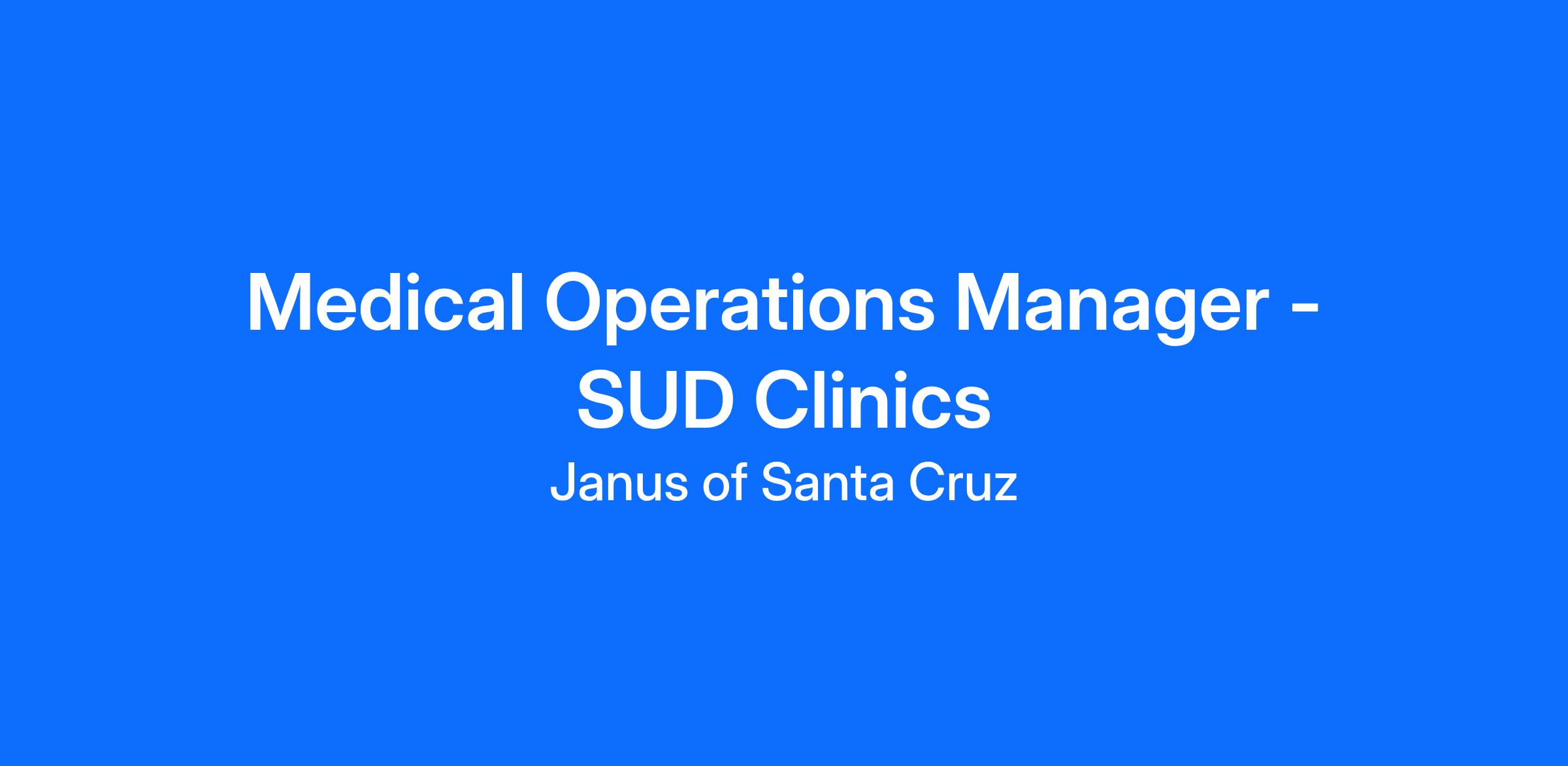 • Minimum of two (2) years of experience in medical operations, healthcare administration, or SUD treatment programs.
