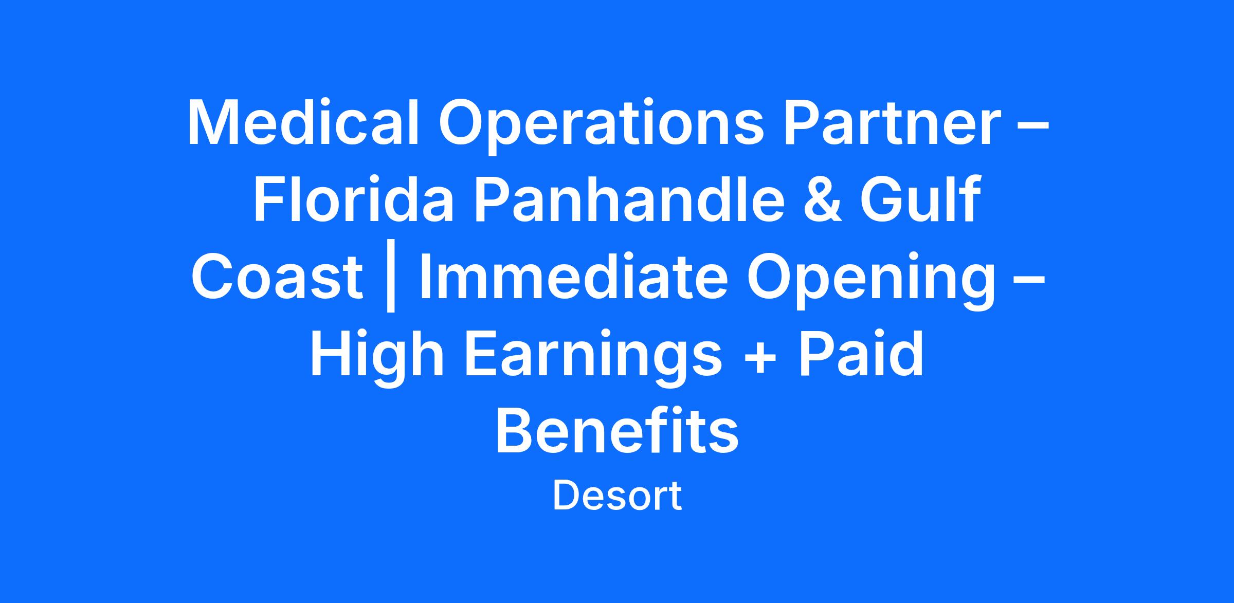 Medical Operations Partner – Florida Panhandle & Gulf Coast