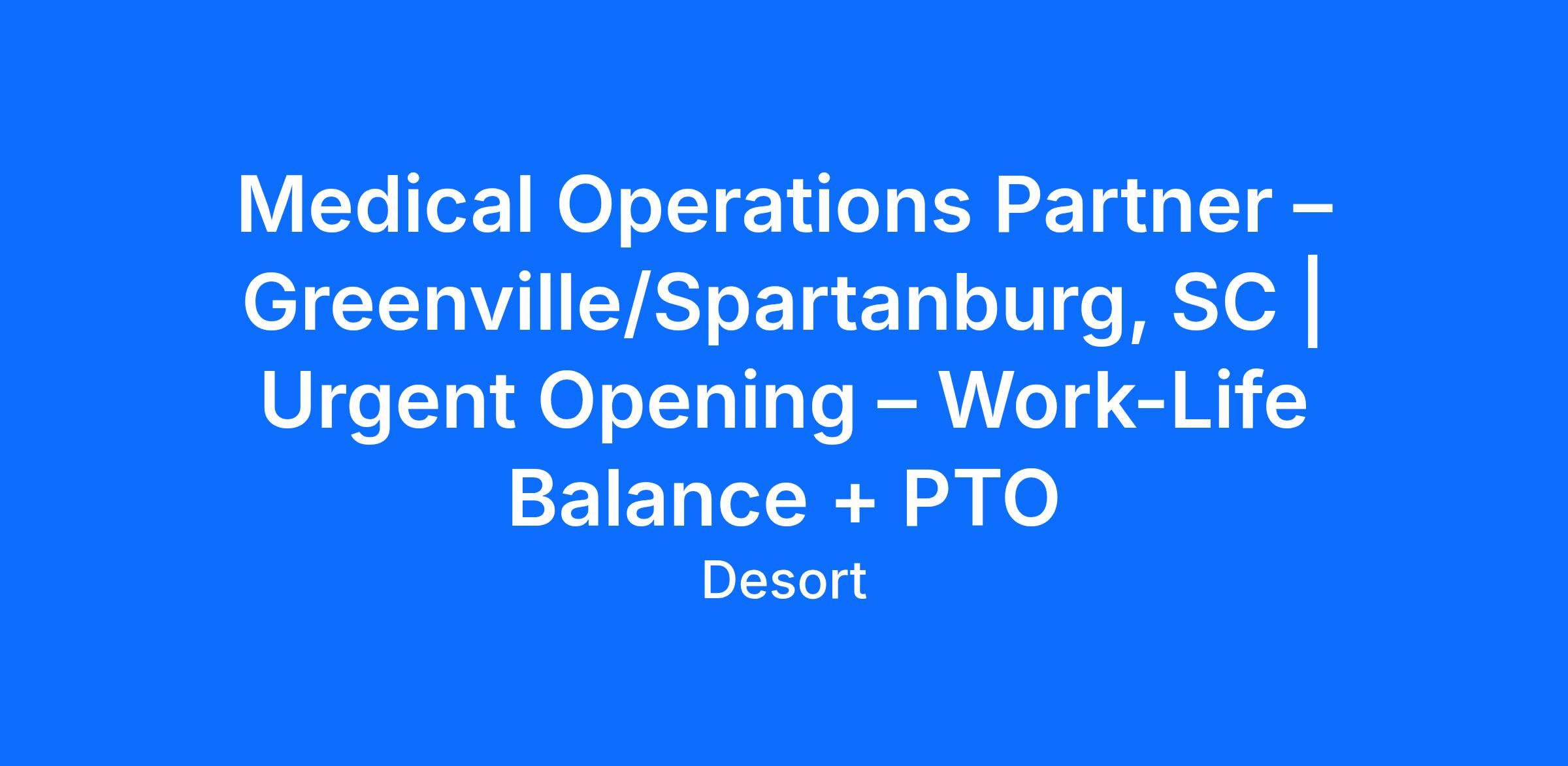 Medical Operations Partner – Greenville/Spartanburg, SC | Urgent Opening – Work-Life Balance + PTO