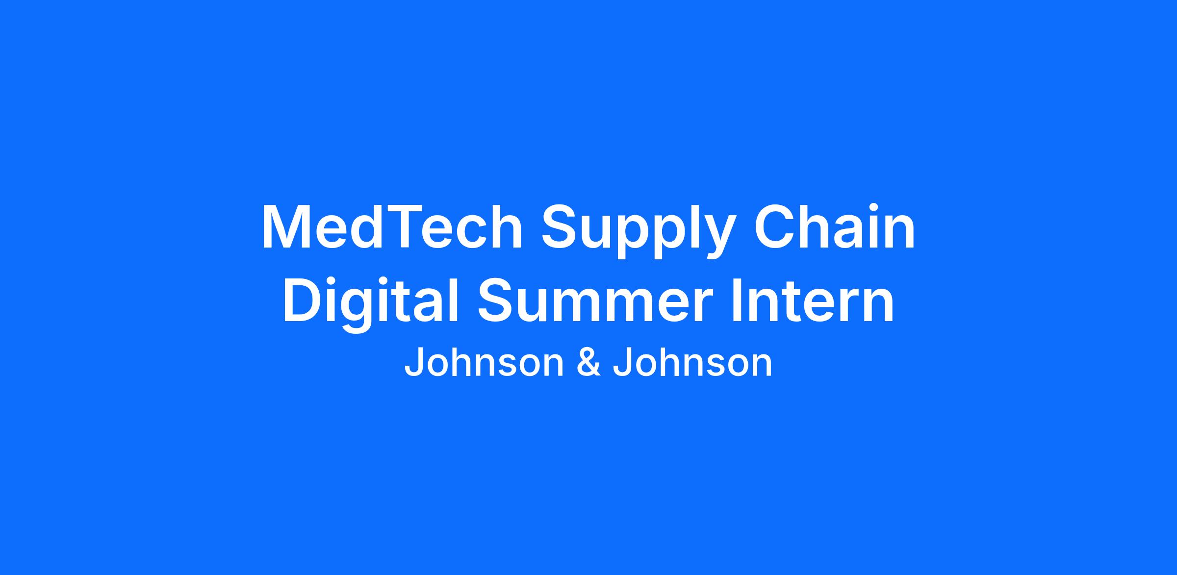 We are searching for the best talent for MedTech Supply Chain Digital Summer Intern to be in New Brunswick, NJ.