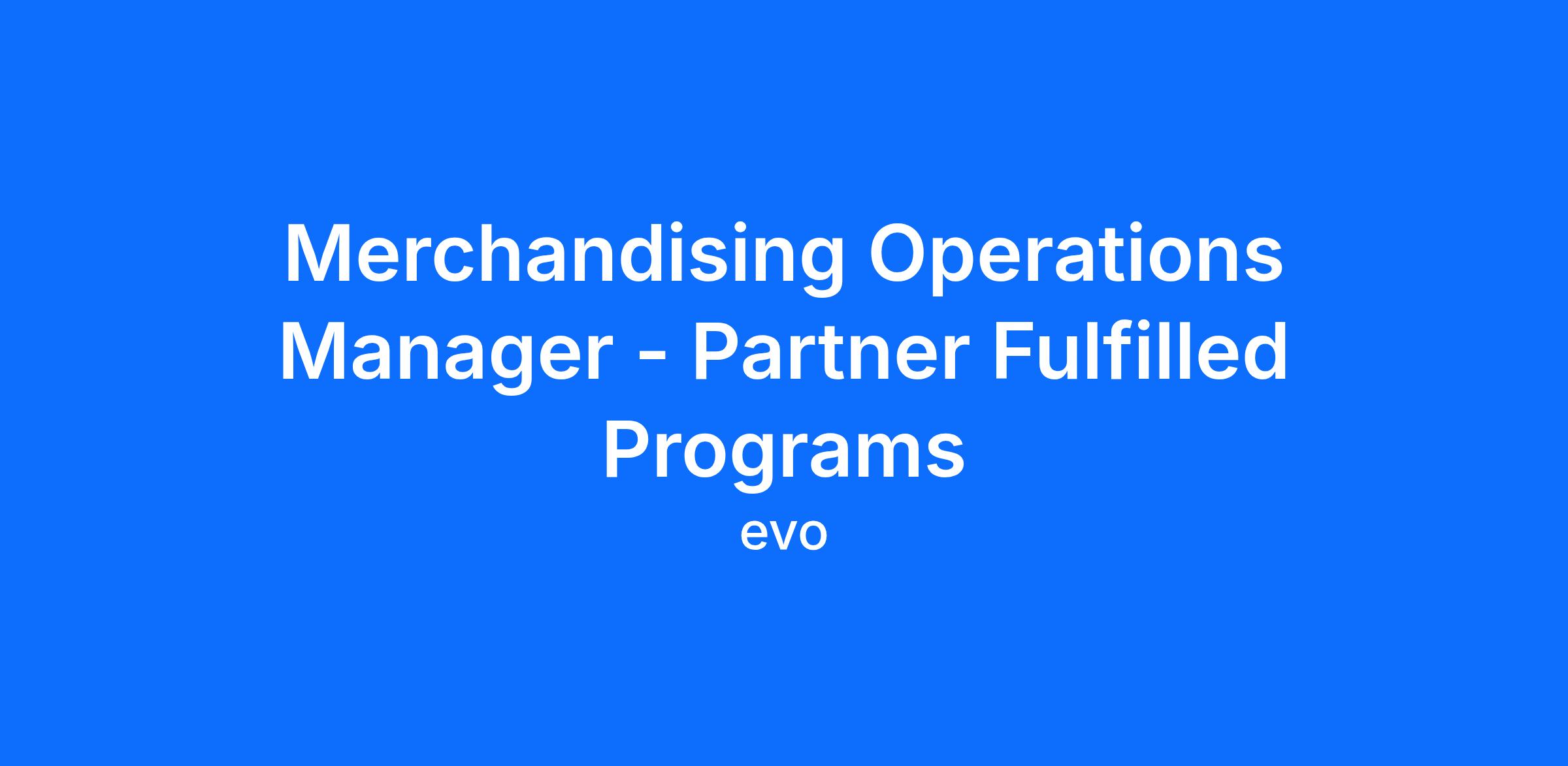 The Merchandising Operations Manager – Partner Fulfilled Programs owns the operational execution, governance, and scalability of evo’s partner-fulfilled commerce models.