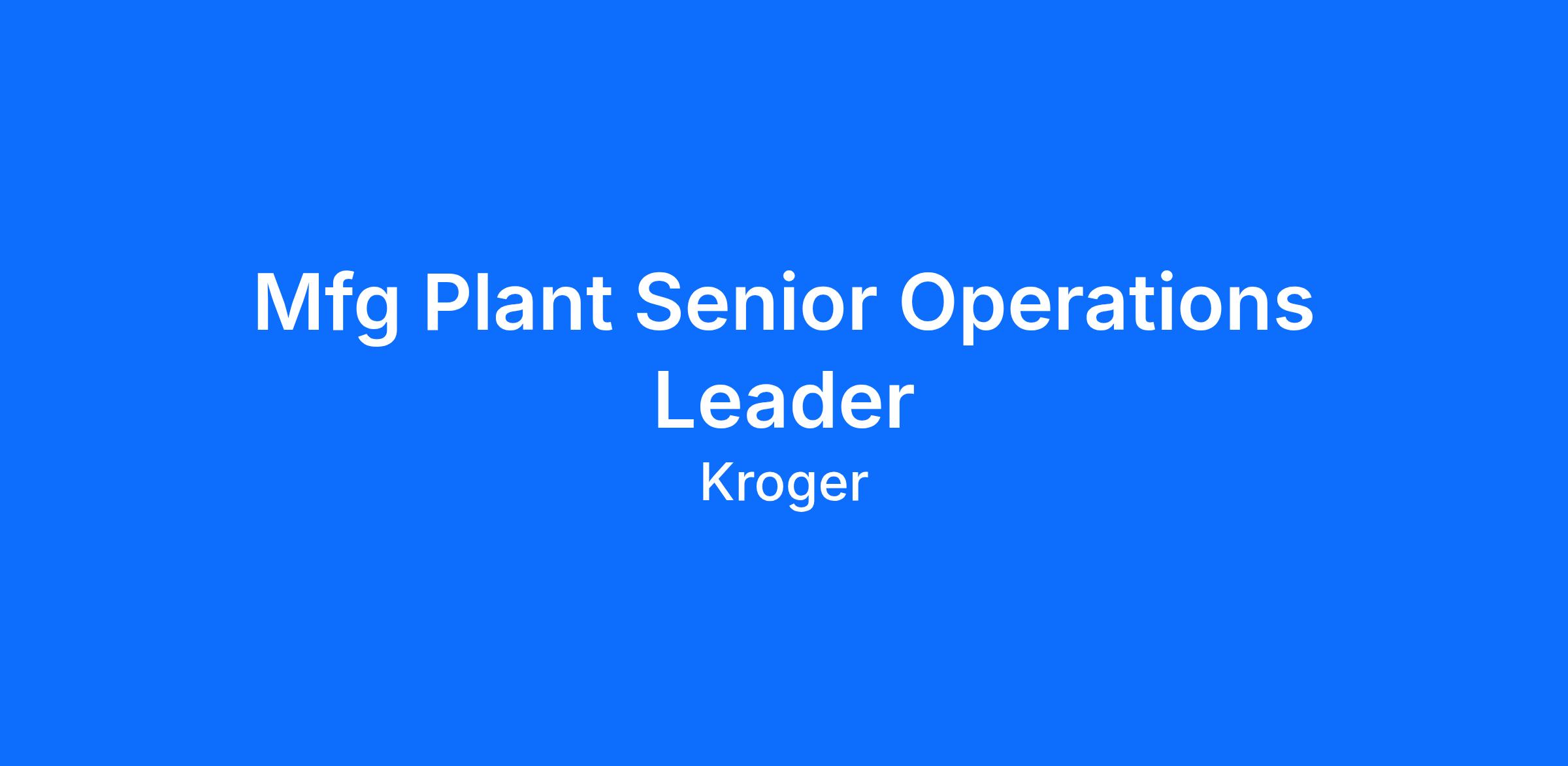 Supervise and control all planning, coordination and direction of production activities, ensuring maximum operating efficiency and product quality. Develop operations resource leaders to maintain and improve plant performance. Perform all jobs safely, efficiently and accurately to maintain and improve the performance of the entire plant in the areas of Safety, Quality, Reliability (SQR) and our Customer 1st strategy. Provide leadership that embodies our 7 Kroger Manufacturing High Performance Work System principles. Demonstrate the company's core values of respect, honesty, integrity, diversity, inclusion and safety.