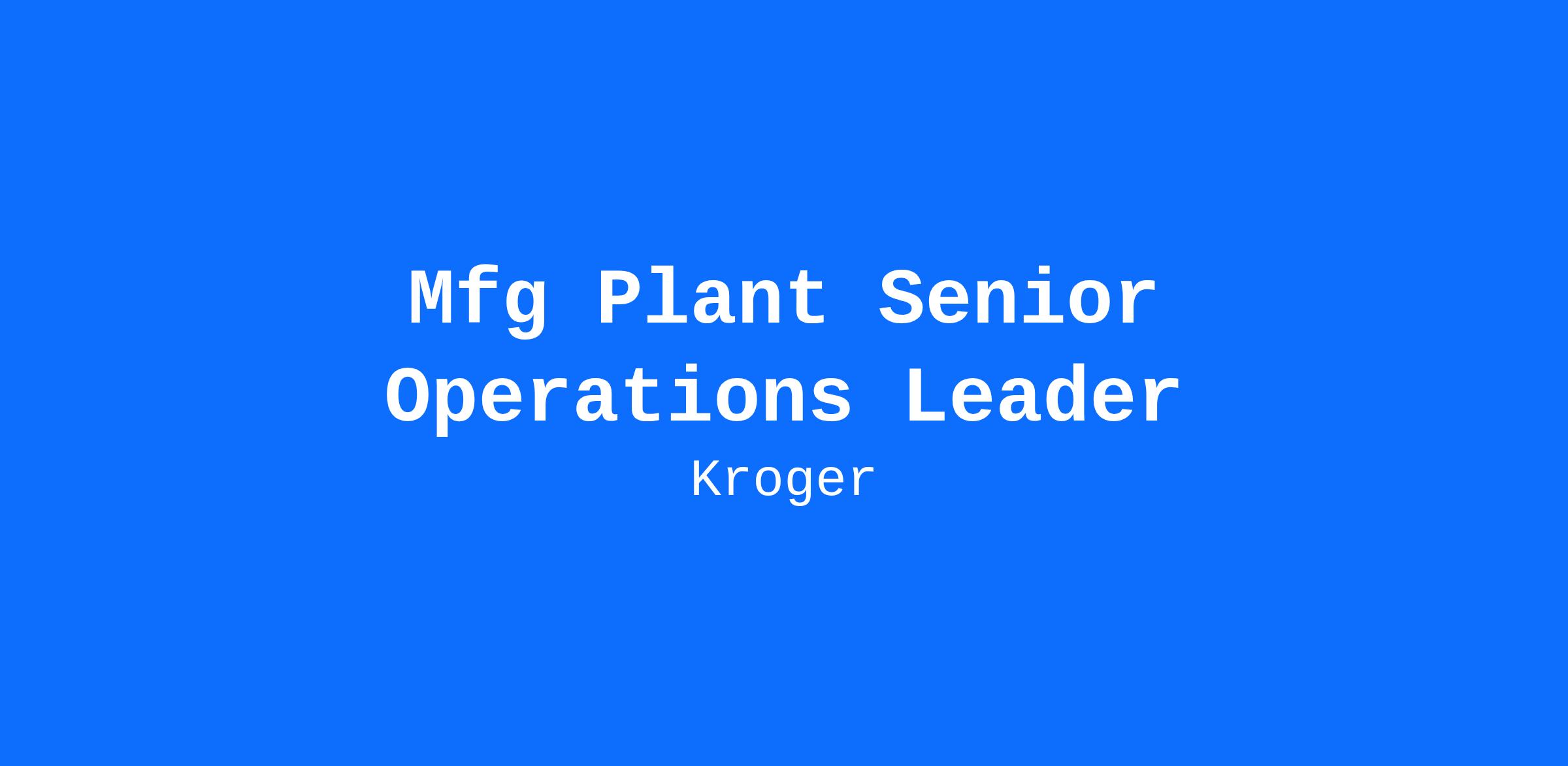 Supervise and control all planning, coordination and direction of production activities, ensuring maximum operating efficiency and product quality. Develop operations resource leaders to maintain and improve plant performance. Perform all jobs safely, efficiently and accurately to maintain and improve the performance of the entire plant in the areas of Safety, Quality, Reliability (SQR) and our Customer 1st strategy. Provide leadership that embodies our 7 Kroger Manufacturing High Performance Work System principles. Demonstrate the company's core values of respect, honesty, integrity, diversity, inclusion and safety.