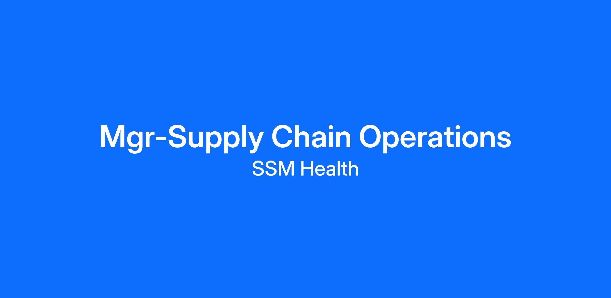 Mgr-Supply Chain Operations