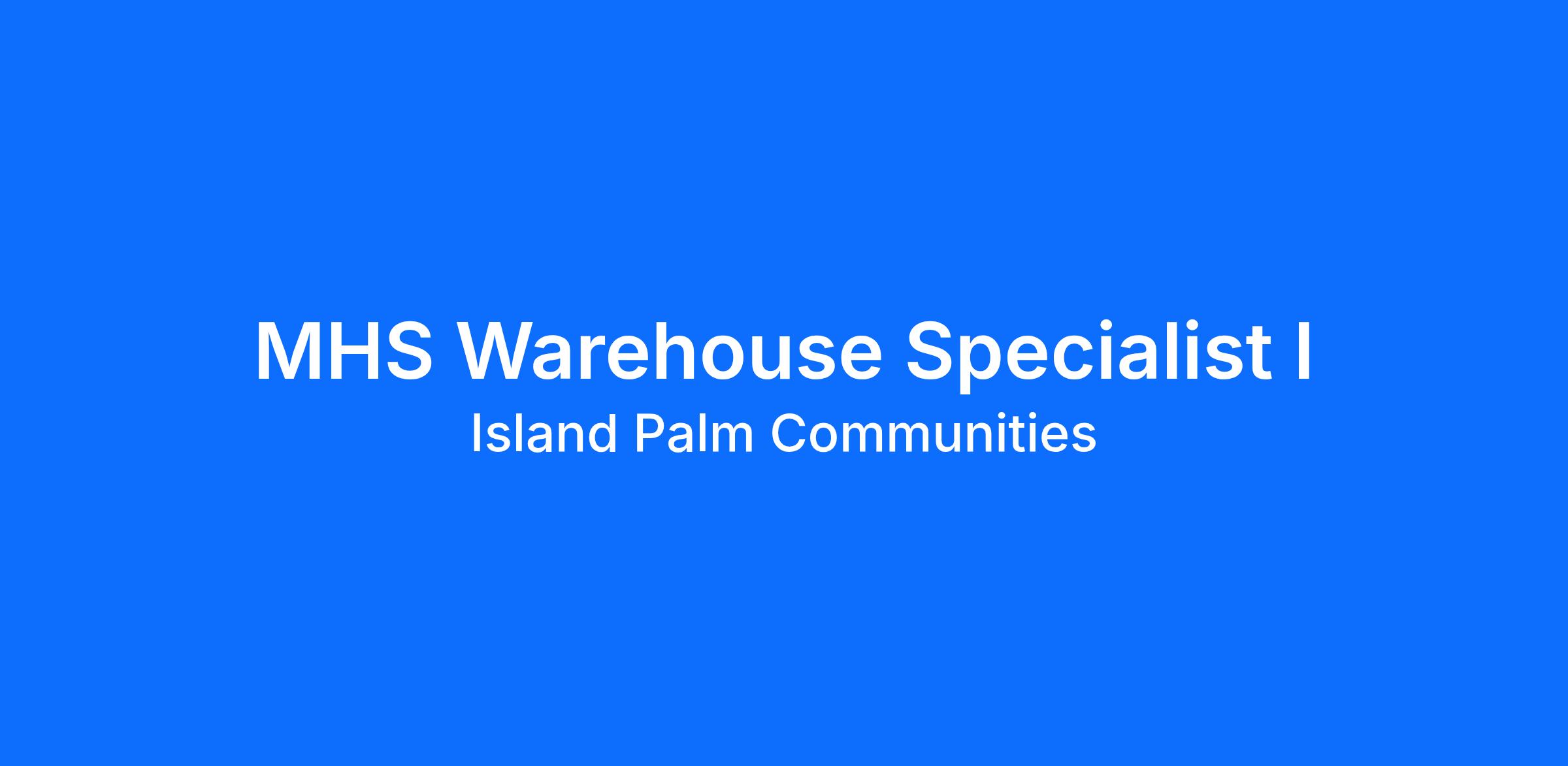 The Warehouse Specialist's primary responsibility is to receive, store, order and issue equipment, materials, supplies, merchandise and tools.