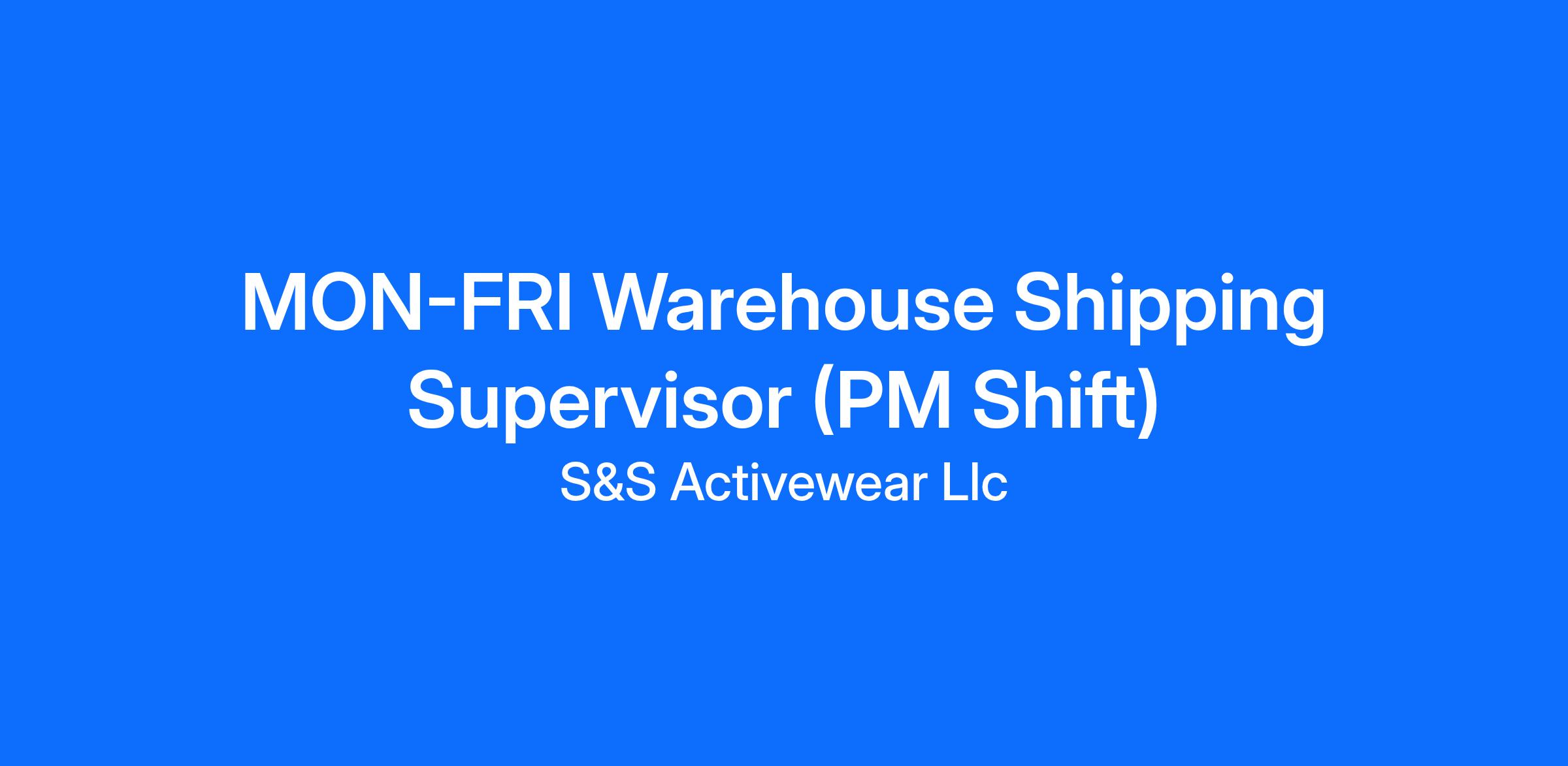 S&S Activewear is seeking a Shipping Department Supervisor to provide support to the Shipping Department Manager and Operations Manager. They will also Provide direct interaction with all team members involved in shipping orders, provide assistance and guidance to employees on issues related to the shipping department. Managing the end of the day cleaning duties. Shipping Supervisor is responsible for coaching employees. Good coaching involves working with employees to establish suitable goals, action plans and timelines. The supervisor delegates and also provides ongoing guidance and support to the employee as they complete their action plans. Responsible to ensure that employees follow the organization's policies and procedures. Shipping Supervisor and all S&S Activewear employees must adhere to the guidelines presented in the S&S Activewear Employee Handbook.