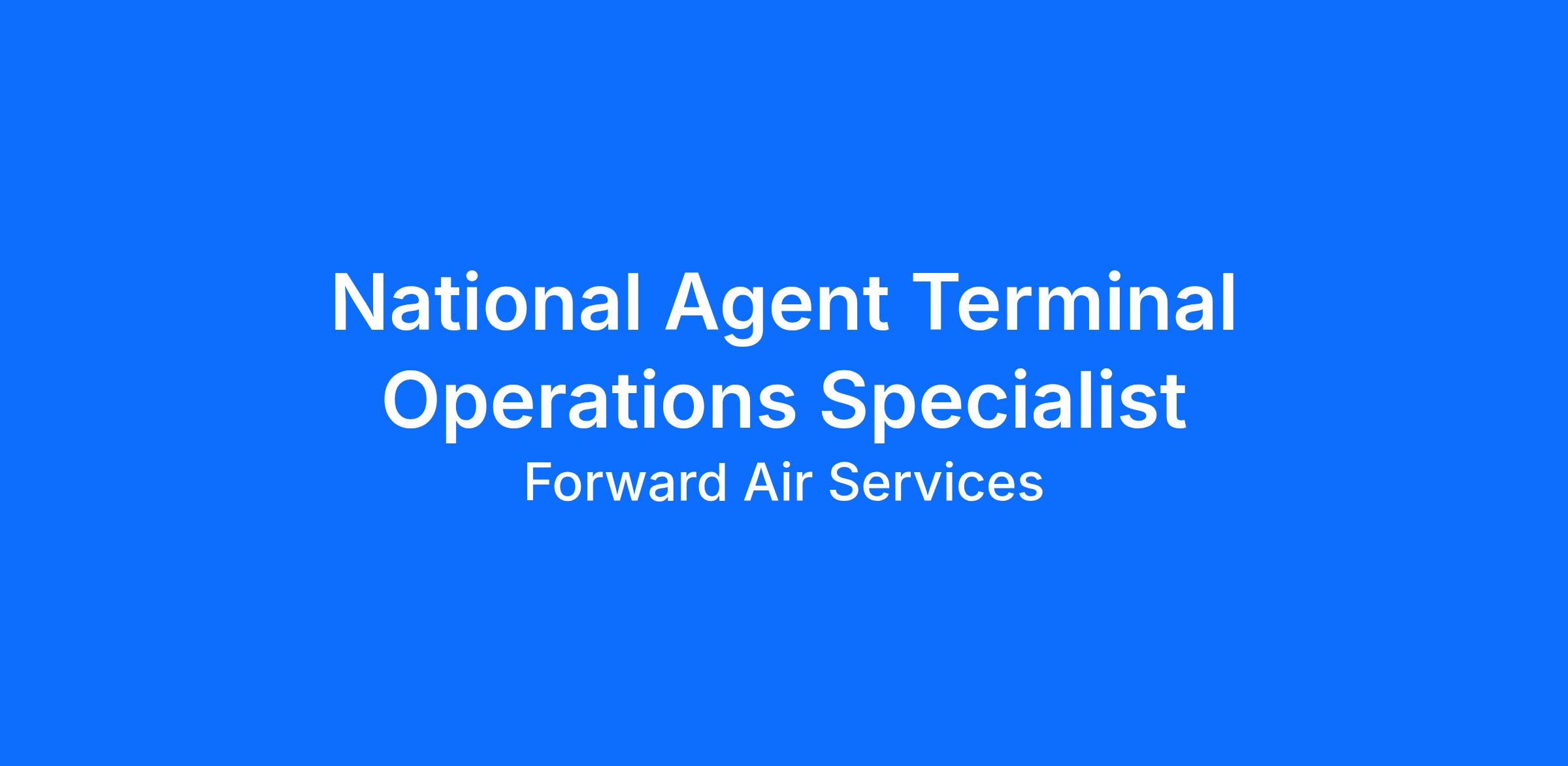 DescriptionPosition: National Agent Terminal Operations Specialist