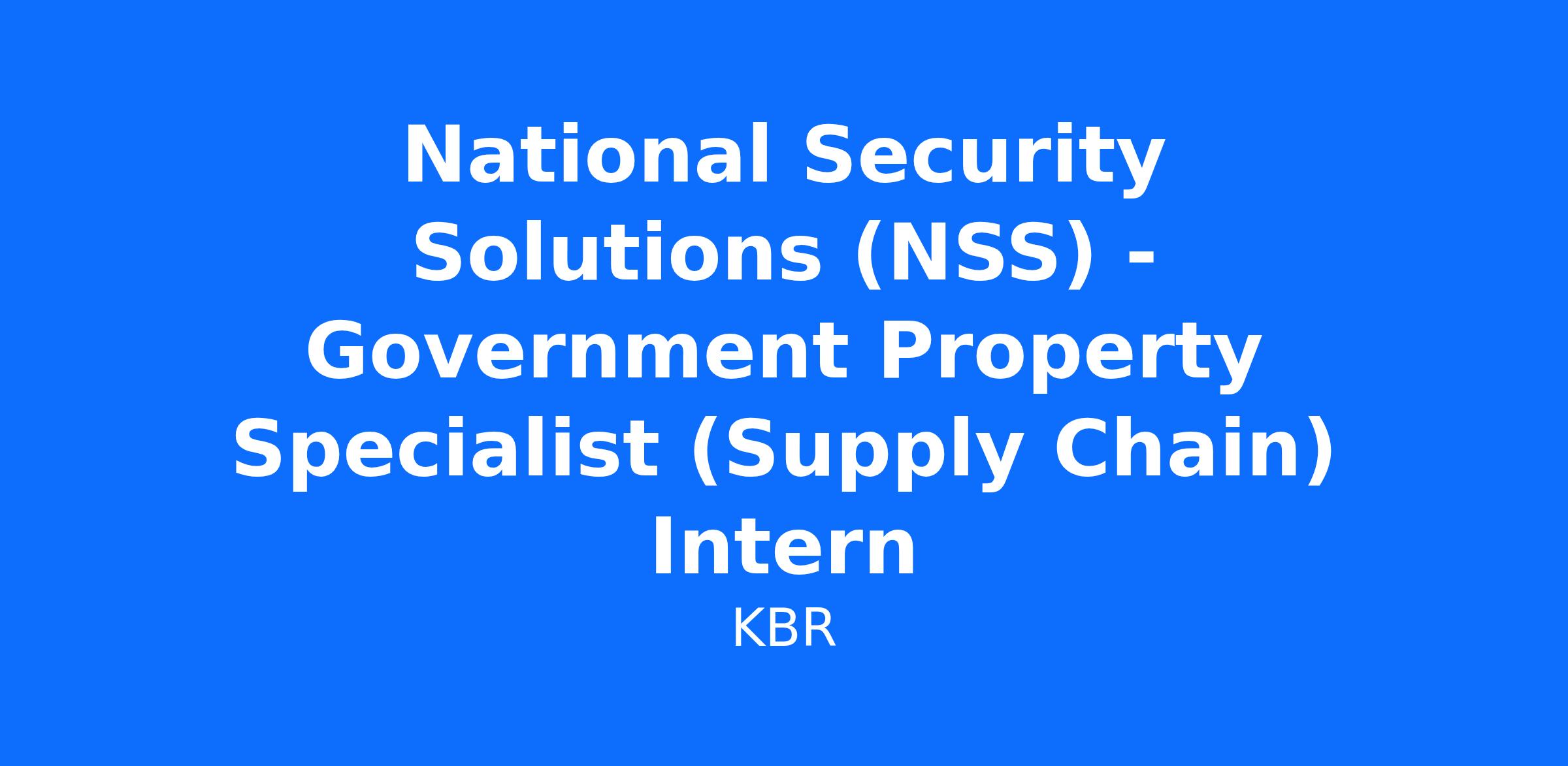 National Security Solutions (NSS) - Government Property Specialist (Supply Chain) InternProject Overview