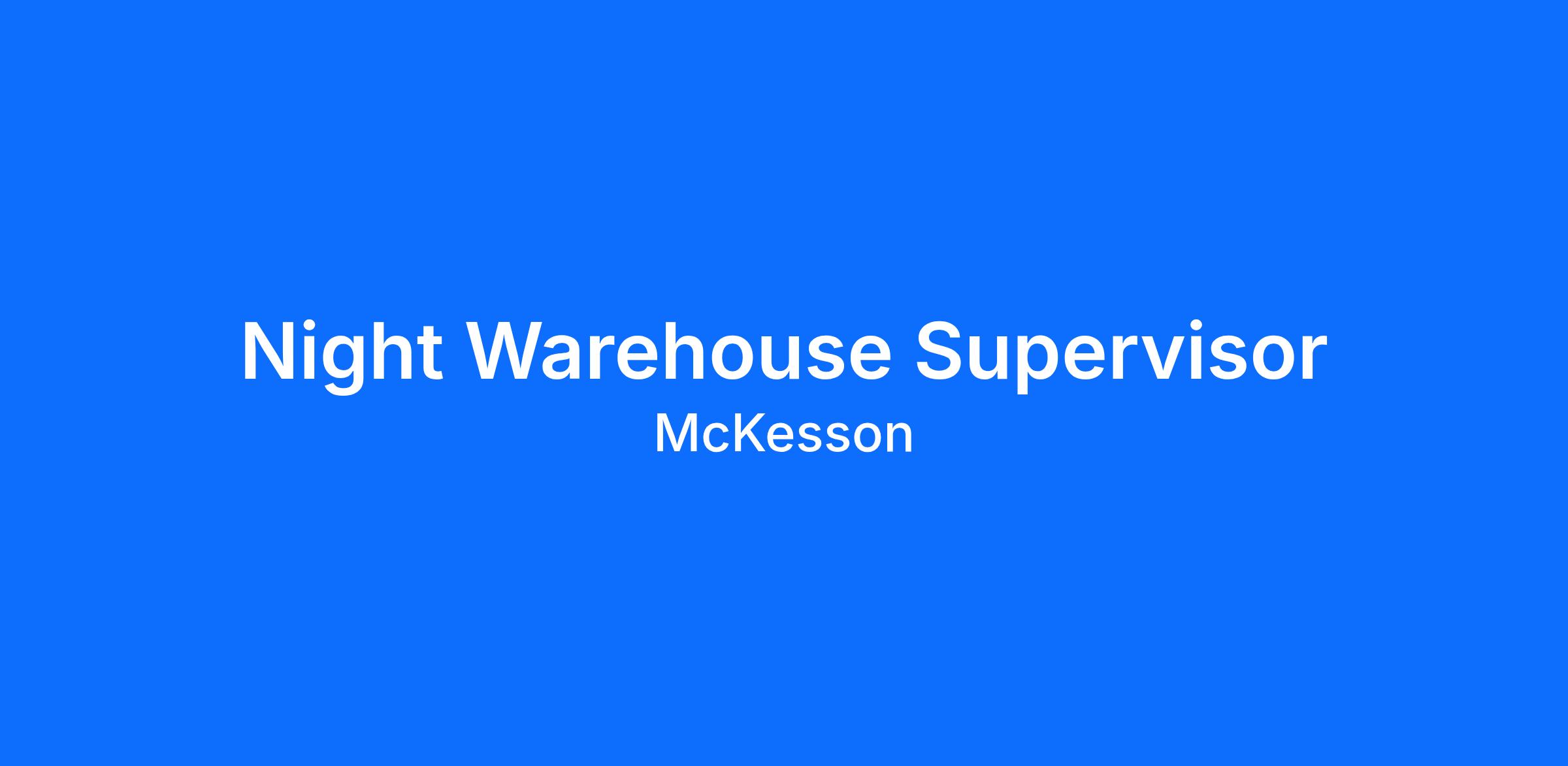 Night Warehouse Supervisor - McKesson Corporation