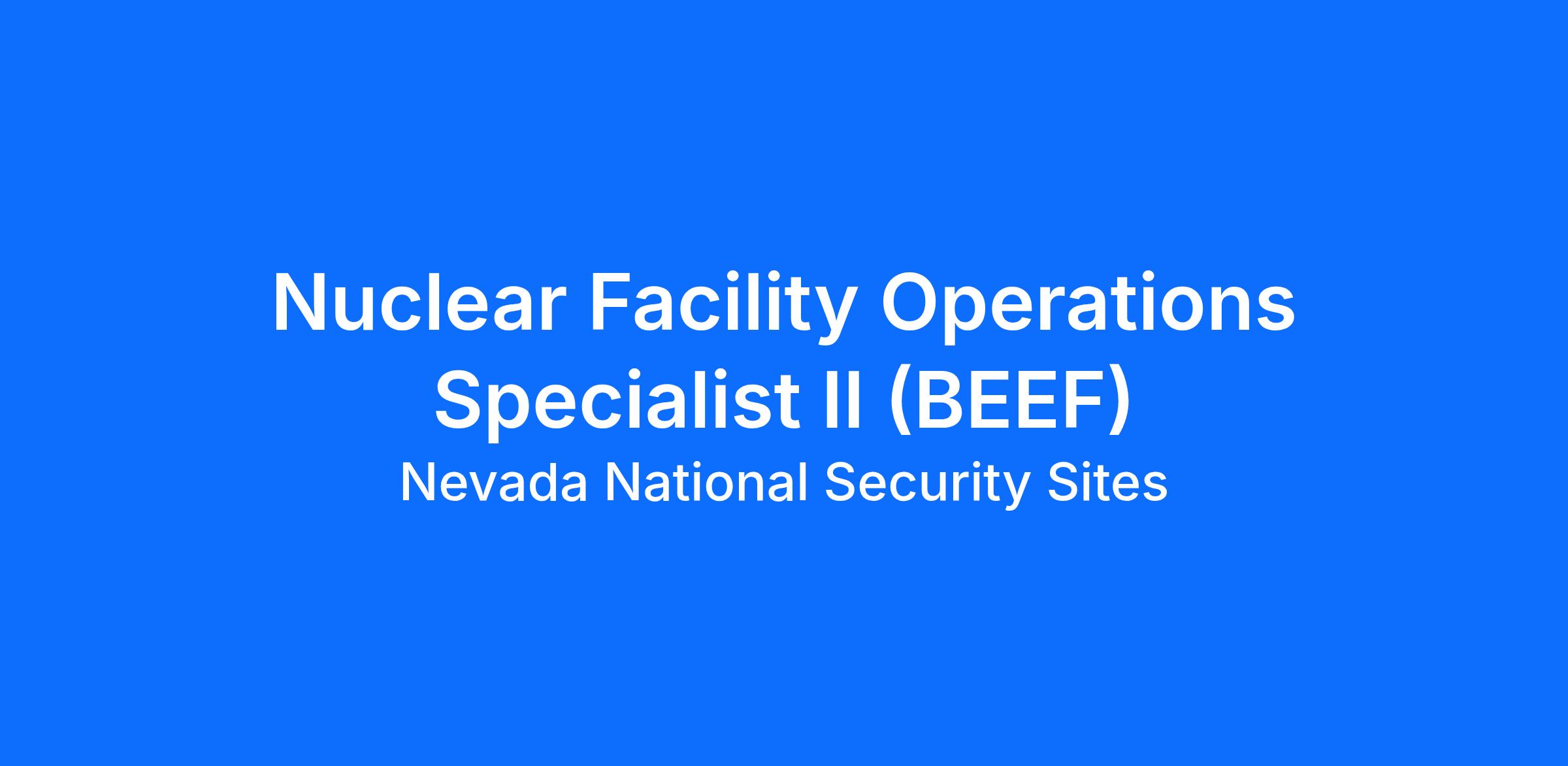 The Nuclear Facility Operations Specialist II supports the Nevada National Security Site (NNSS) High Hazard Facilities, BEEF facility or assigned as an Operator Technician II. The Operator Technician II will perform support duties to maintain facility, operability and mission support as detailed below. This position is interchangeable with the same position at the Baker facility. The primary purpose is to ensure that facility operability is consistently safely maintained according to U.S. Department of Energy (DOE), federal, and state requirements.