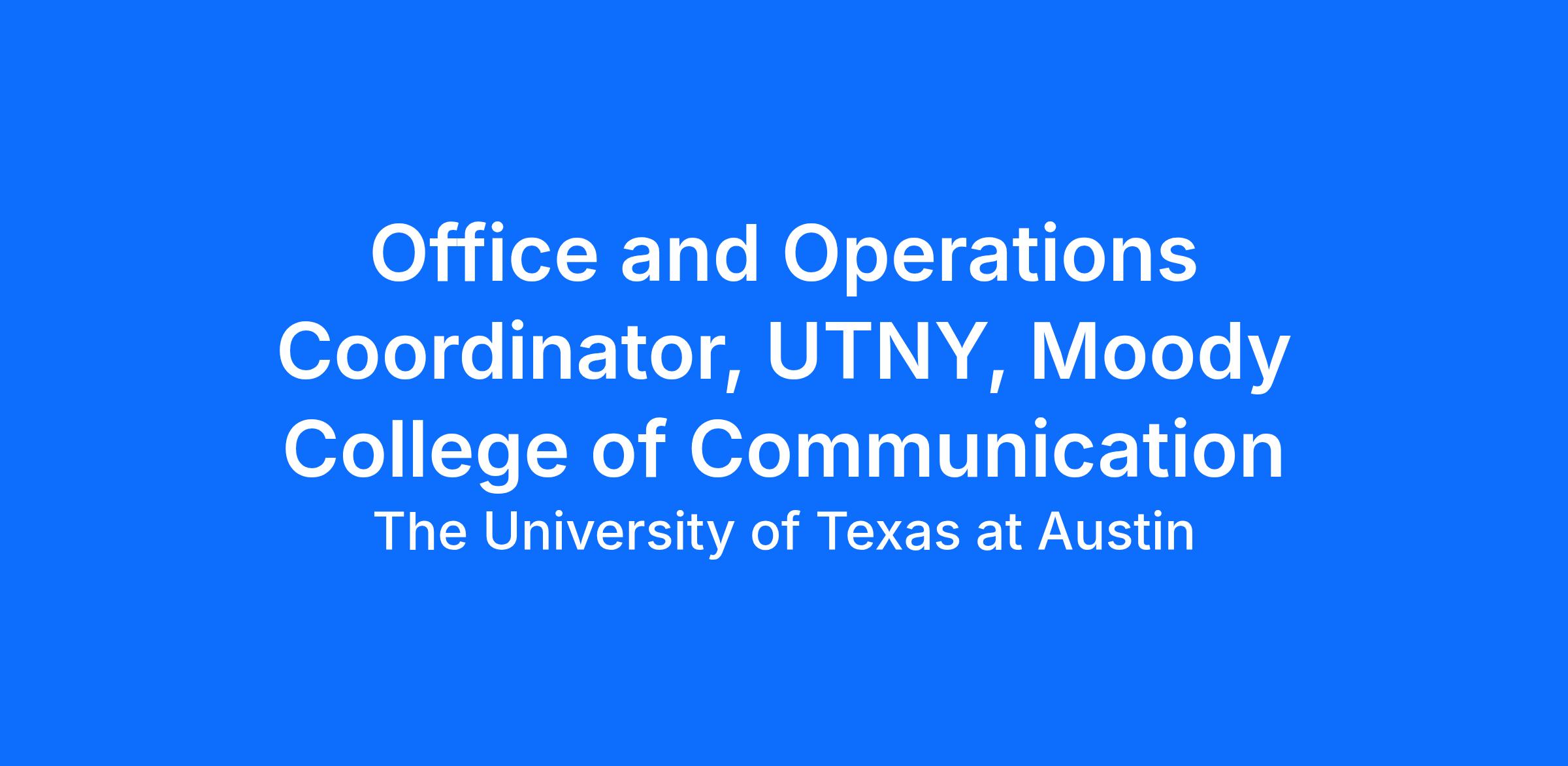 Office and Operations Coordinator, UTNY, Moody College of Communication----