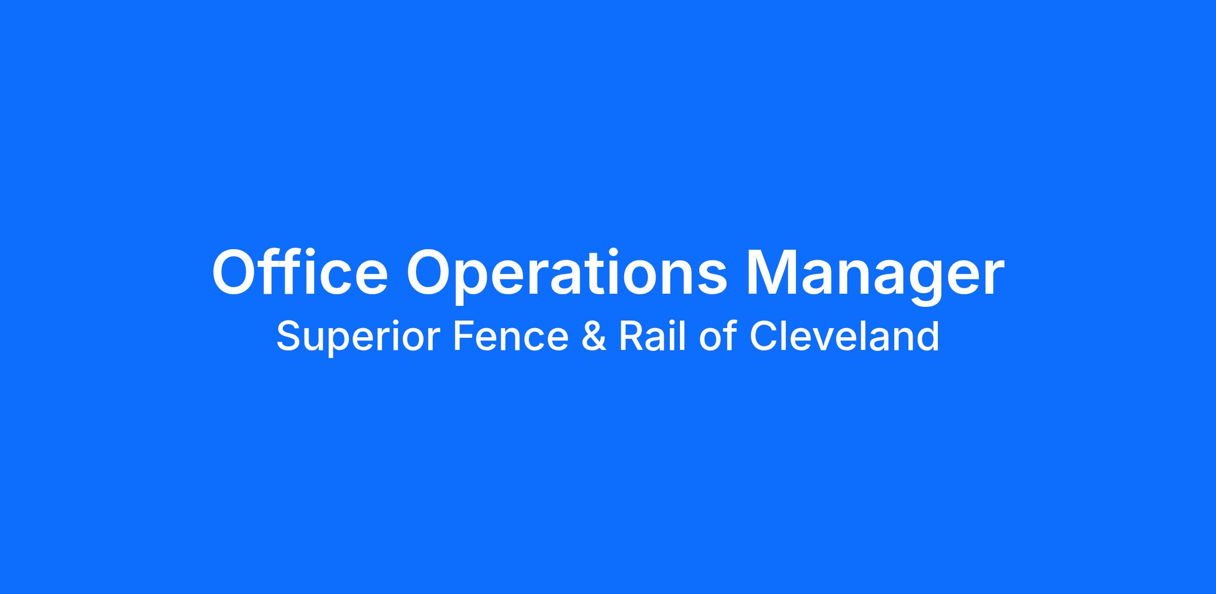 Superior Fence & Rail of Columbus is looking for a highly organized and proactive Office Operations Manager to join our growing organization and play a pivotal role in maintaining smooth day-to-day operations.