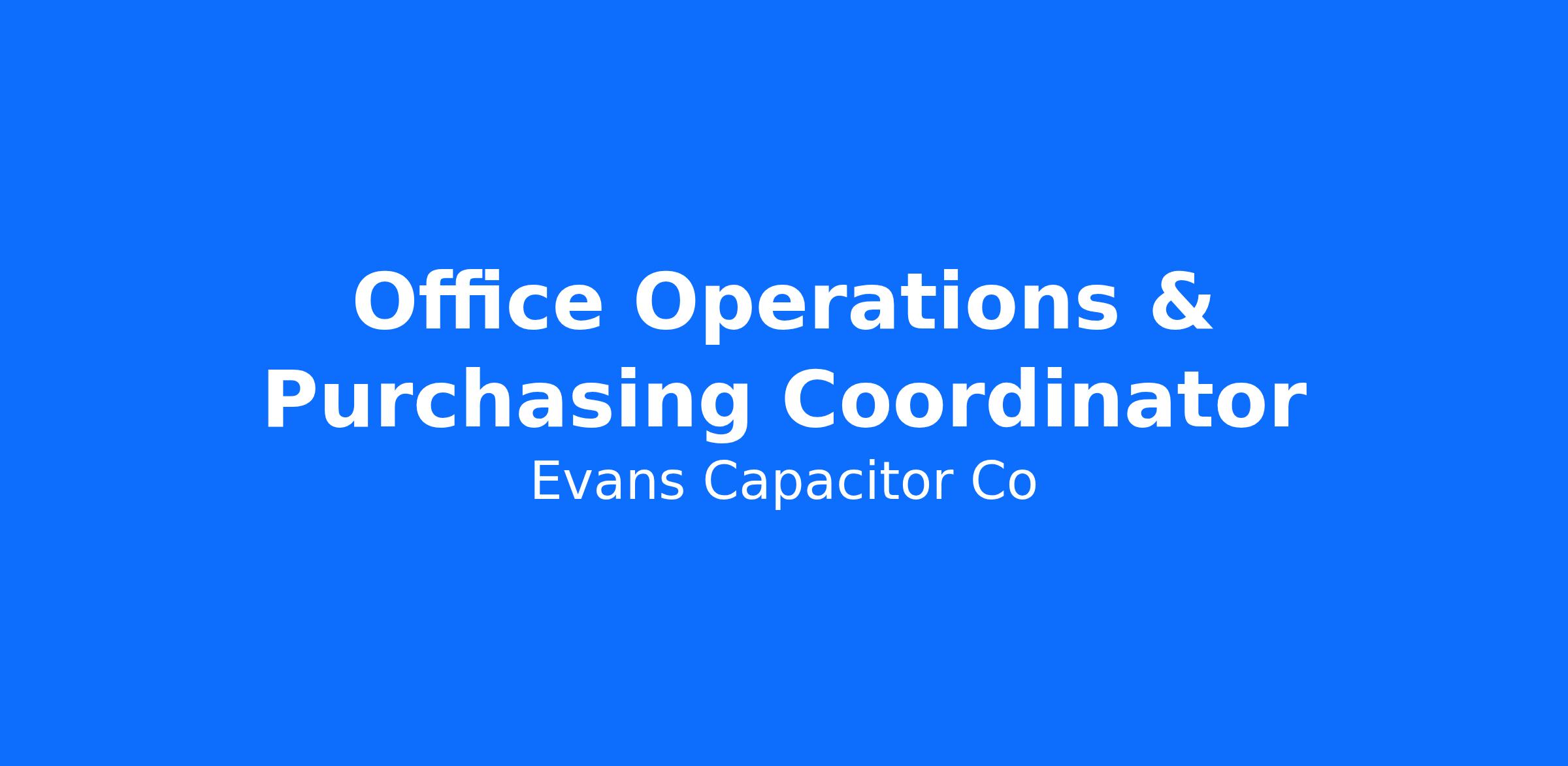 The Office Operations & Purchasing Coordinator is responsible for ensuring the smooth day-to-day operation of the office and the facility's administrative functions. This role supports front desk operations, indirect purchasing, vendor documentation, safety compliance support, and employee engagement activities.