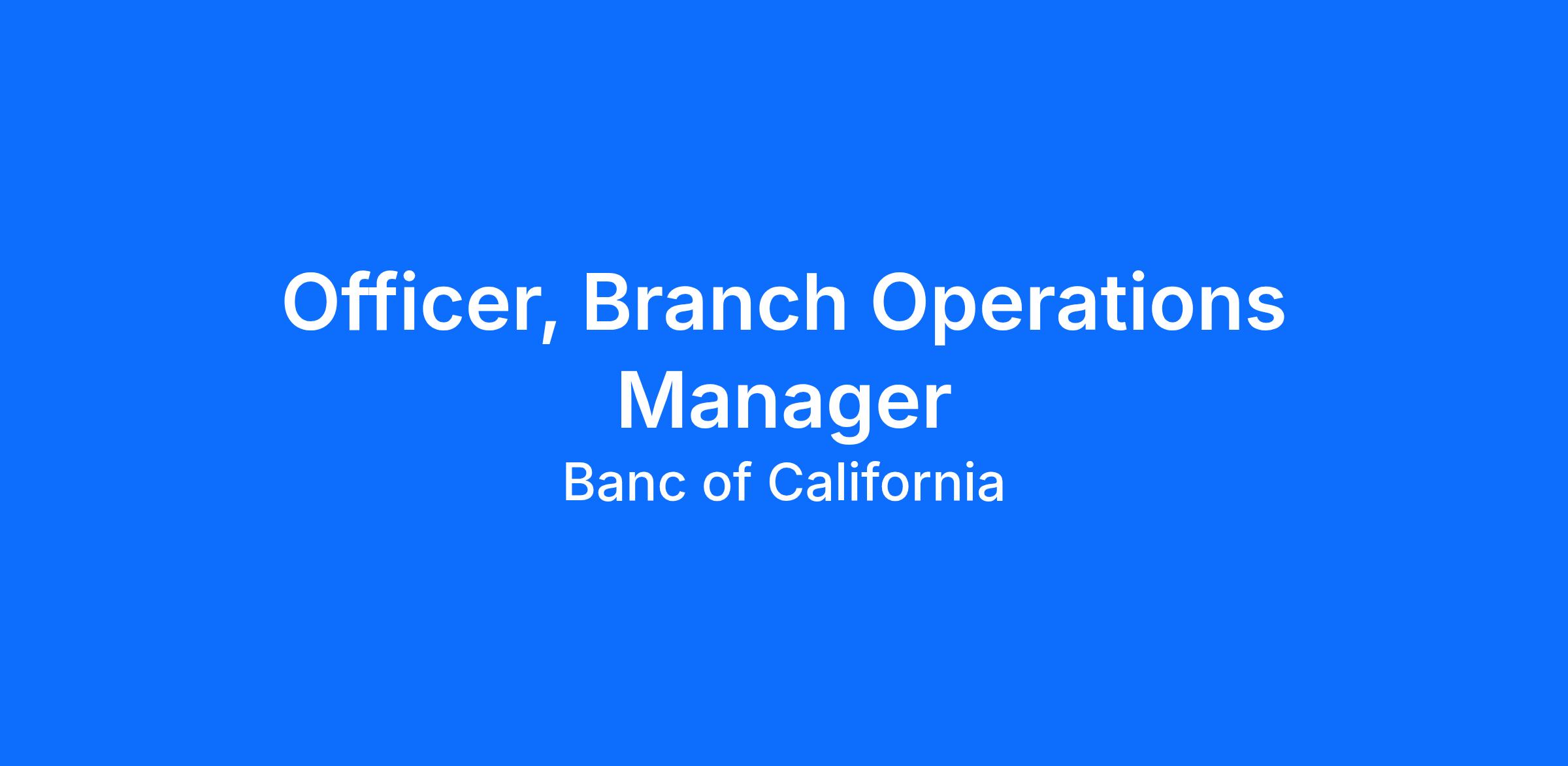 BANC OF CALIFORNIA AND YOUR CAREER