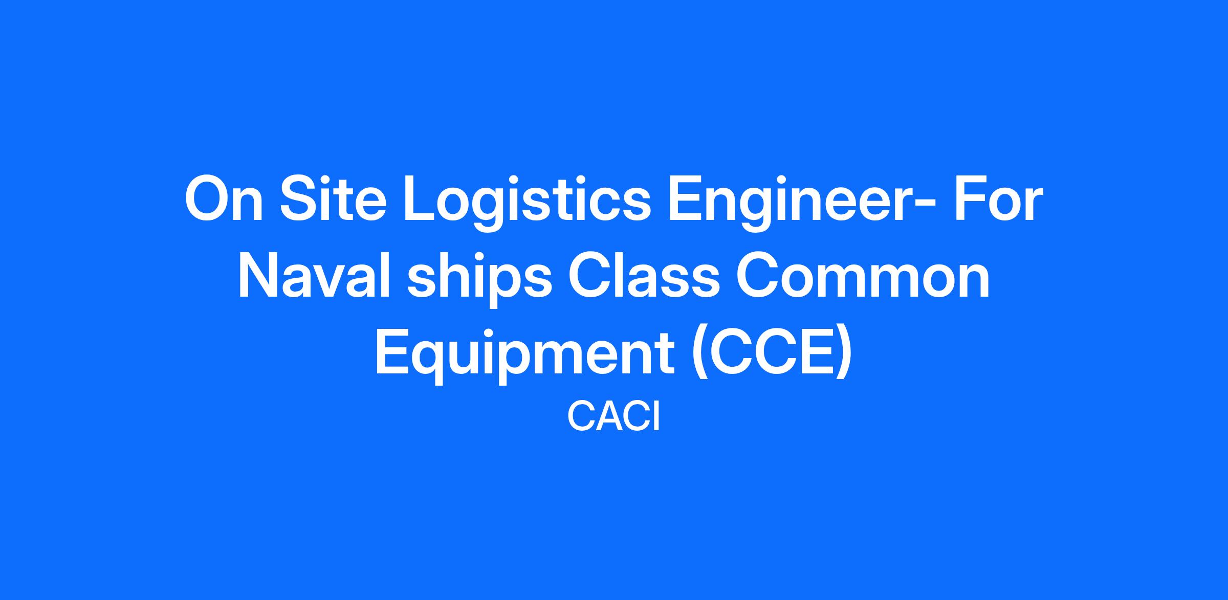 CACI is seeking a cleared On Site Logistics Engineer- Navy in Norfolk, VA Single Point of Entry for all ships, Port Engineers, and other interested parties in all homeports for all Naval ships Class Common Equipment (CCE) related issues. tracking, Issuing, and custodial support for the CCE Program. Track paybacks and provide ships with updated list of what items are still owed in CCE program. . If you are looking for a great opportunity CACI would like to speak with you.