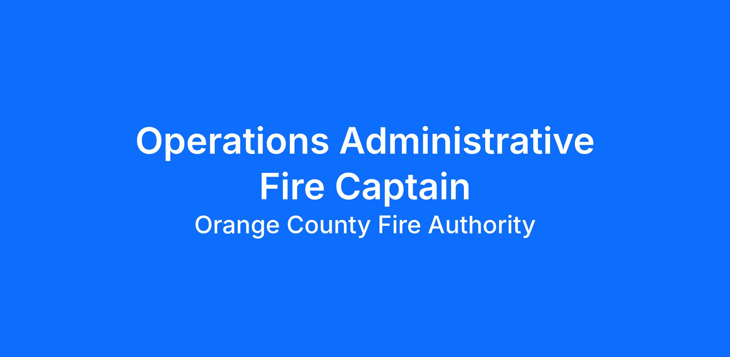 The Operations Administrative Captain recruitment is an Orange County Fire Authority (OCFA) internal recruitment. Only applications from current, non-probationary OCFA Fire Captains will be accepted.