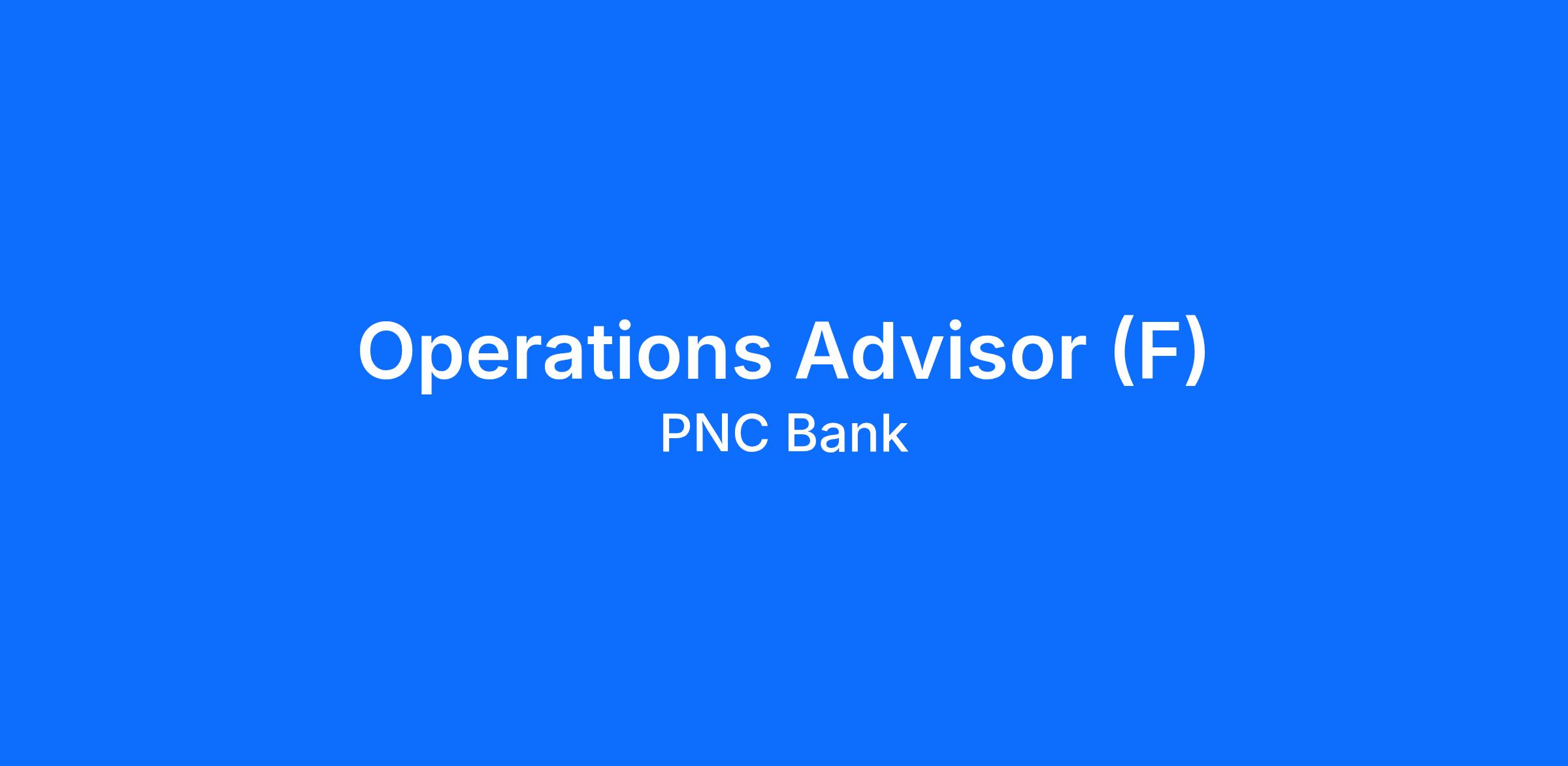 At PNC, our people are our greatest differentiator and competitive advantage in the markets we serve. We are all united in delivering the best experience for our customers. We work together each day to foster an inclusive workplace culture where all of our employees feel respected, valued and have an opportunity to contribute to the company’s success. As an Operations Advisor (F) within PNC's Investment Operations organization, you will be based remotely in Pittsburgh, PA.