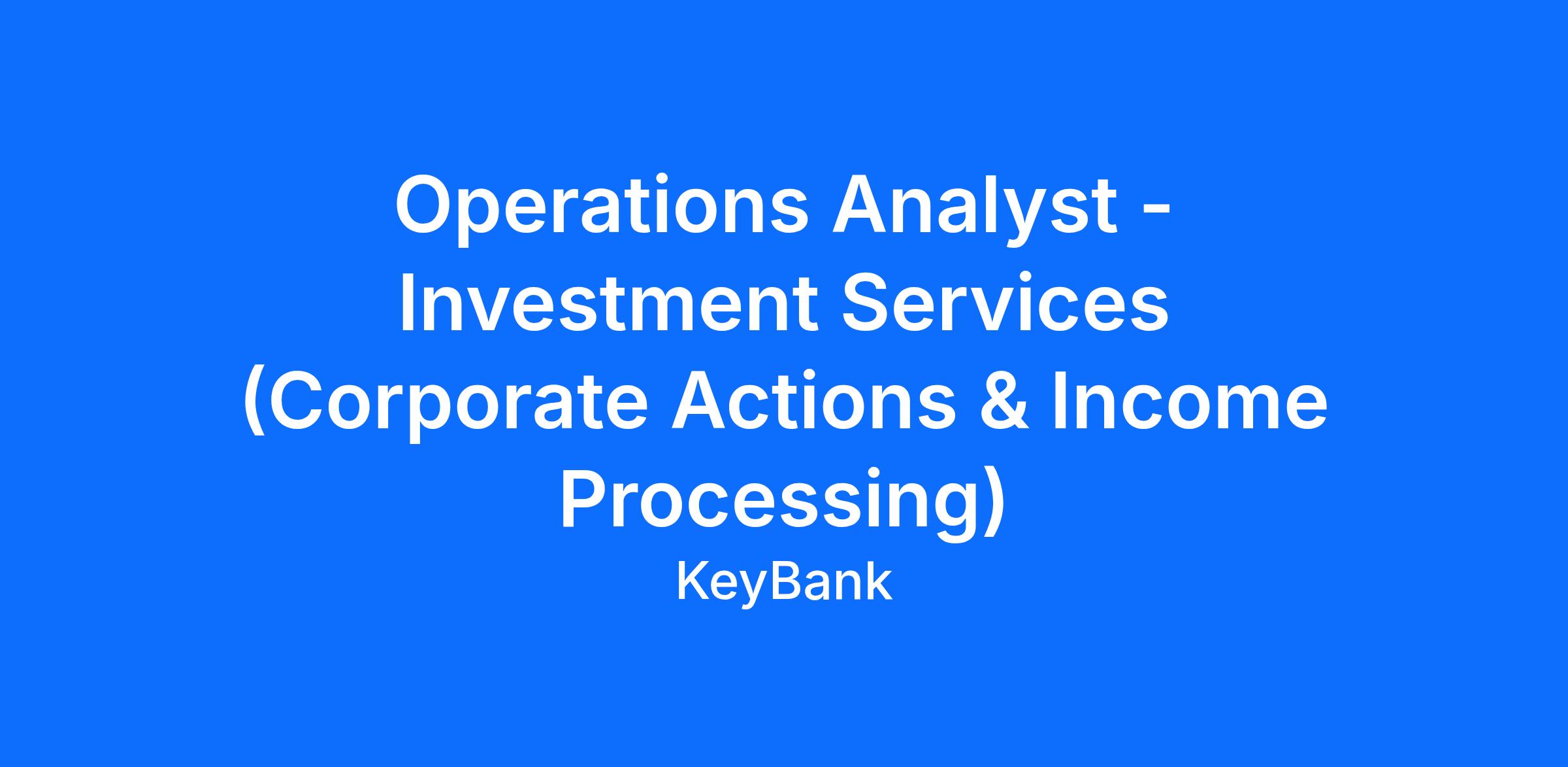 Working within a team environment, responsible for corporate actions processing support for securities held by Key Private Bank clients on our accounting system, Global Plus. This position manages daily processing flows, analyzes reporting and resolves exceptions in a timely basis.