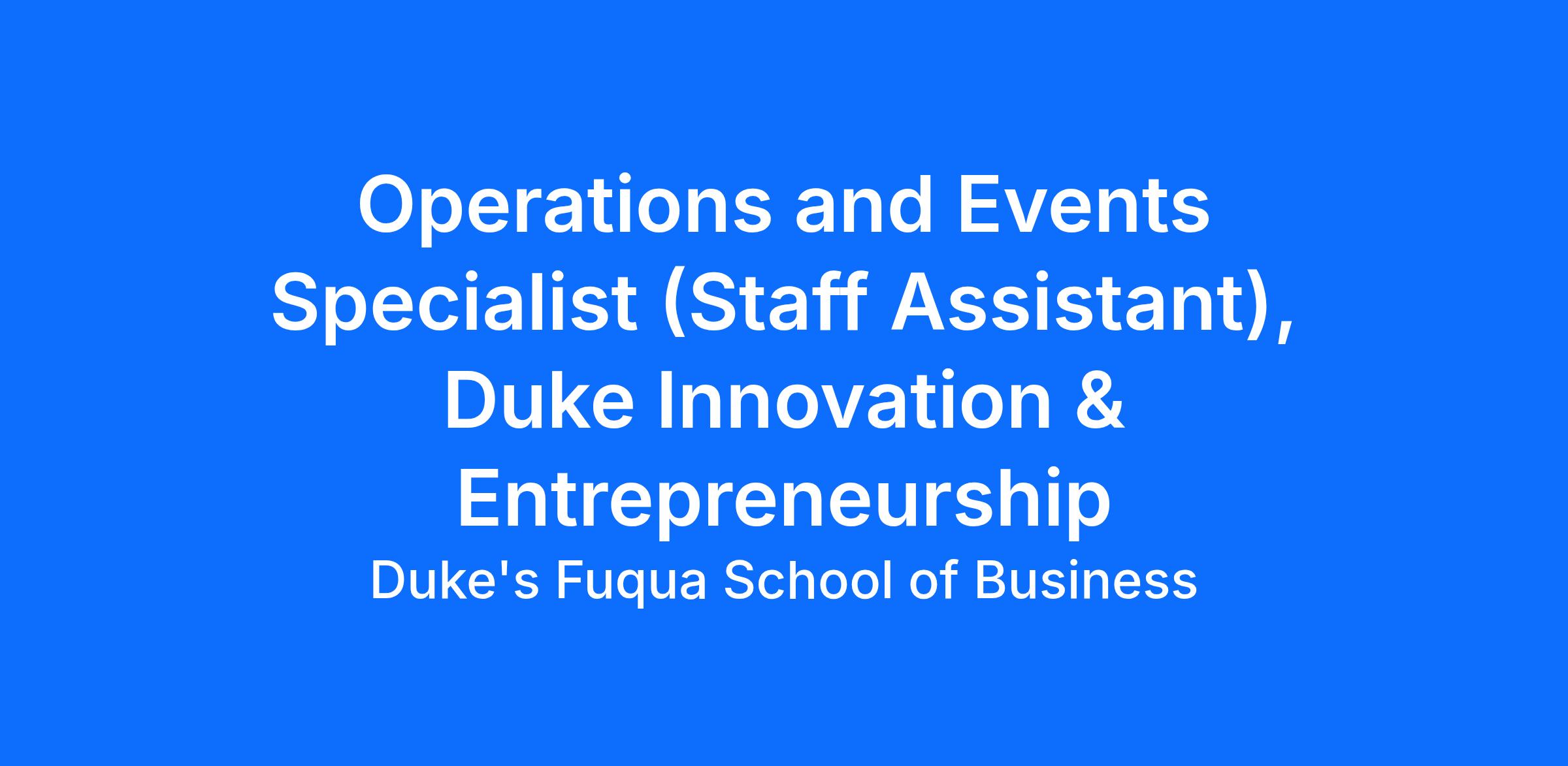The Operations and Events Specialist (Staff Asst., level 9) is responsible for the operations, administration, and event execution duties in support of Duke Innovation & Entrepreneurship (I&E) programs. This role ensures seamless program delivery through coordinated event logistics, financial administration, and effective office operations. The position requires strong organizational skills, attention to detail, and the ability to collaborate across teams while managing multiple priorities. This position reports to the Managing Director of Co-curricular Programs.