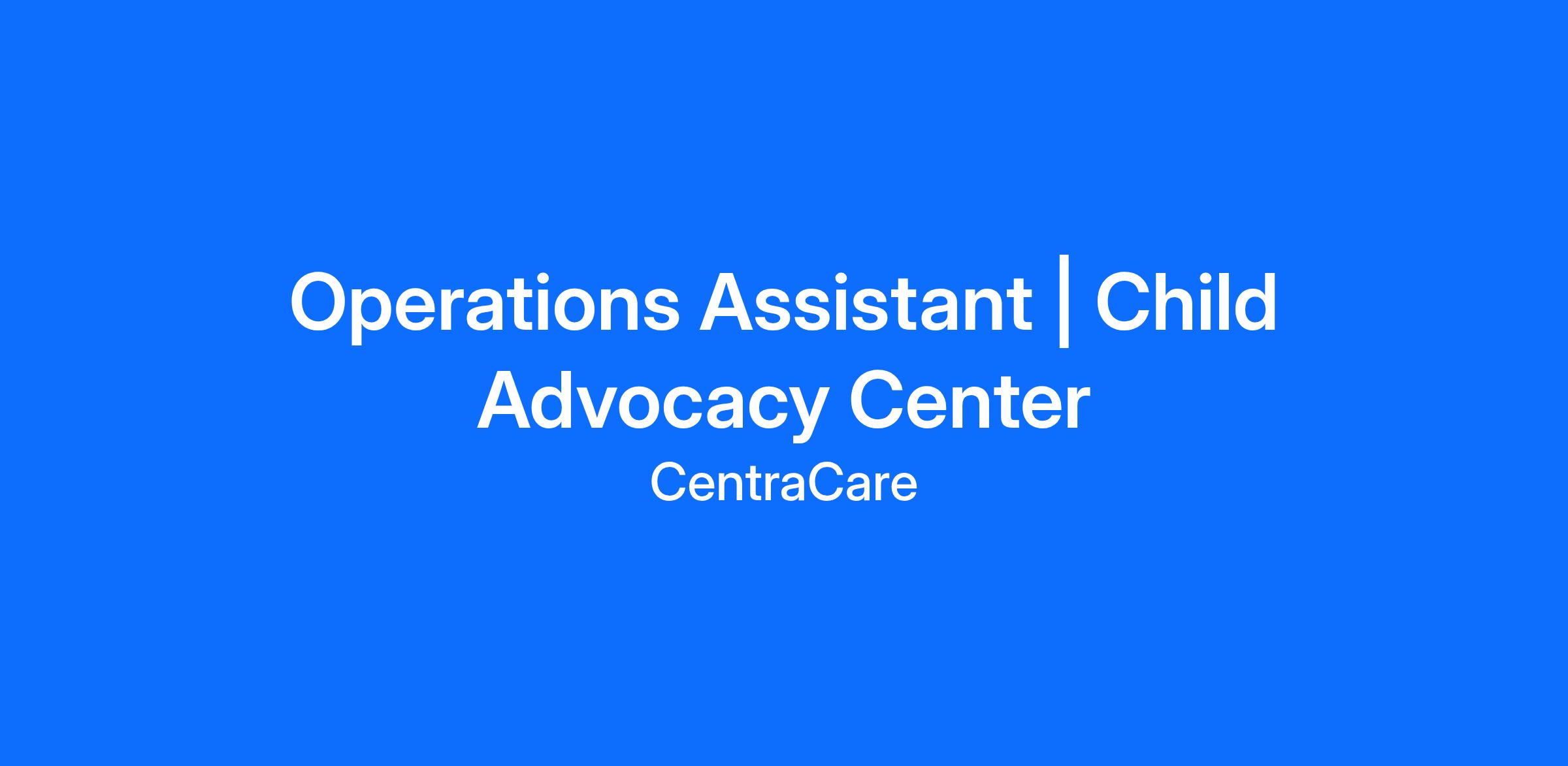 DescriptionThe Operations Assistant is responsible for providing overall support for the Operations CAC Supervisor and the department within to help ensure everything behind the scenes runs smoothly. Utilizes Microsoft Office, presentation software, database management and available software packages. Responsible for Clinic Coordination for the Child Advocacy Center. This is an entry-level position.