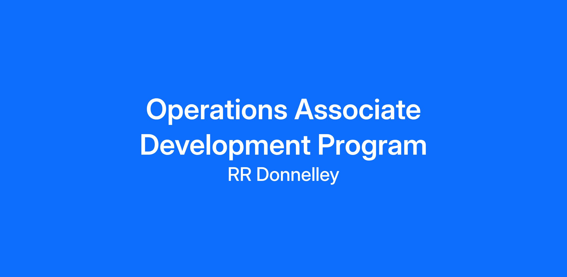 The Associate - Operations-Leadership program is a full-time, entry-level role that provides a twelve-month training program to prepare you for an operational leadership position in one of our manufacturing facilities throughout the United States. The program is designed to offer comprehensive training in all areas of the manufacturing facility to learn the RRD solutions and manufacturing processes.