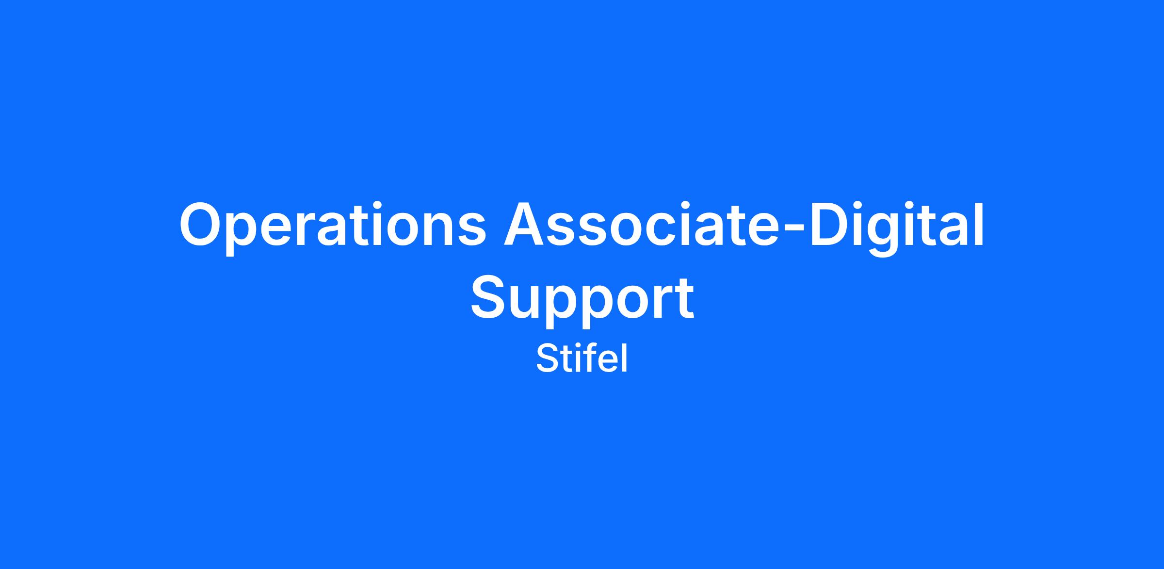 The Digital Support Associate is responsible for aiding in driving departmental results for the ongoing support for Stifel's Client Facing Platforms. This position requires the ability to gain a sound understanding of department subject matter including Digital Client Application Support, assisting with relevant training materials, and level 2 troubleshooting. This position will require collaboration among team members, IT Product Support, and branch office personnel to provide a high level of customer service under direct supervision while following established procedures.