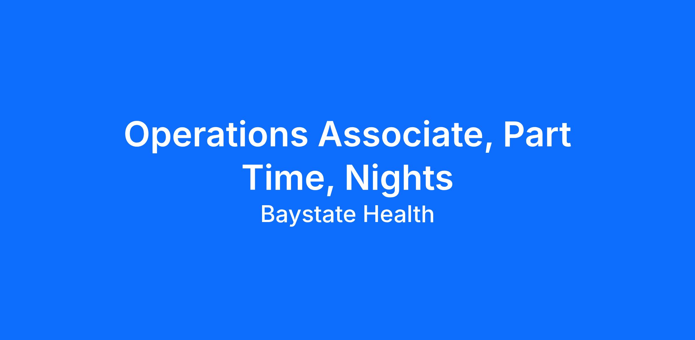 Baystate Health is an Equal Opportunity employer. All qualified applicants will receive consideration for employment without regard to race, color, religion, sex, sexual orientation, gender identity, marital status, national origin, ancestry, age, genetic information, disability, or protected veteran status.