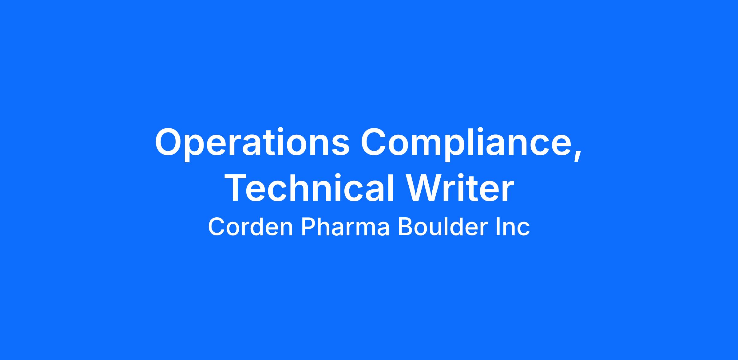 The Operations Compliance, Technical Writer acts as the primary resource for authorship of procedures and technical documents used or in support of the Operations and Technical Operations Department (e.g., standard operating procedures, training documentation, change controls, risk assessments, gap assessments, maintenance documentation, etc.) to support the manufacture of intermediate and API drug substances. In this role, the Technical Writer is responsible for ensuring that these documents are delivered on time, in a compliant fashion, and to the standards expected by the teams that own, execute, and use the documents.