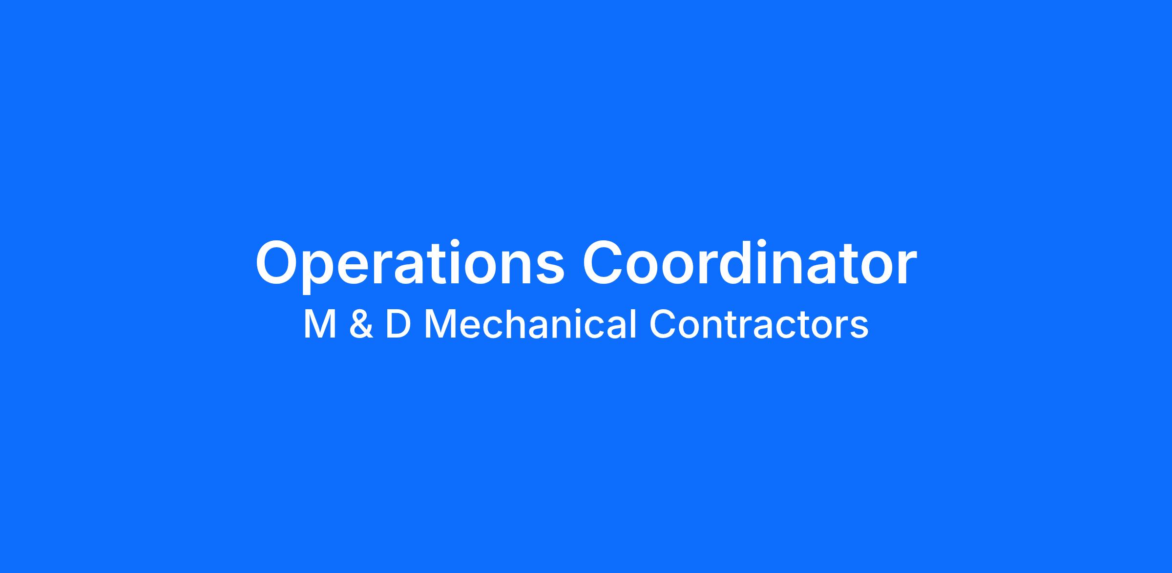 If you are a motivated and organized individual with a passion for operations and project coordination, we want to hear from you! Apply now to join our team at M & D Mechanical Contractors in San Francisco, CA.