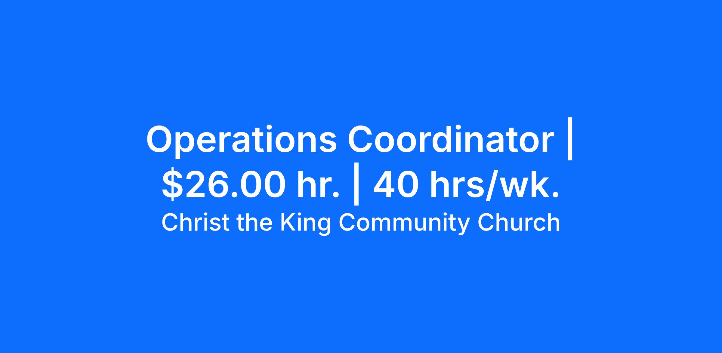 The Operations Coordinator works closely with the Finance, Technology, Property & Facilities Management Department leaders to ensure operational efficiency and accuracy in all departments. As a core member of Network Services, this person is committed to stewarding the church’s resources in a manner that is honoring to God to carry out the mission of CTK.