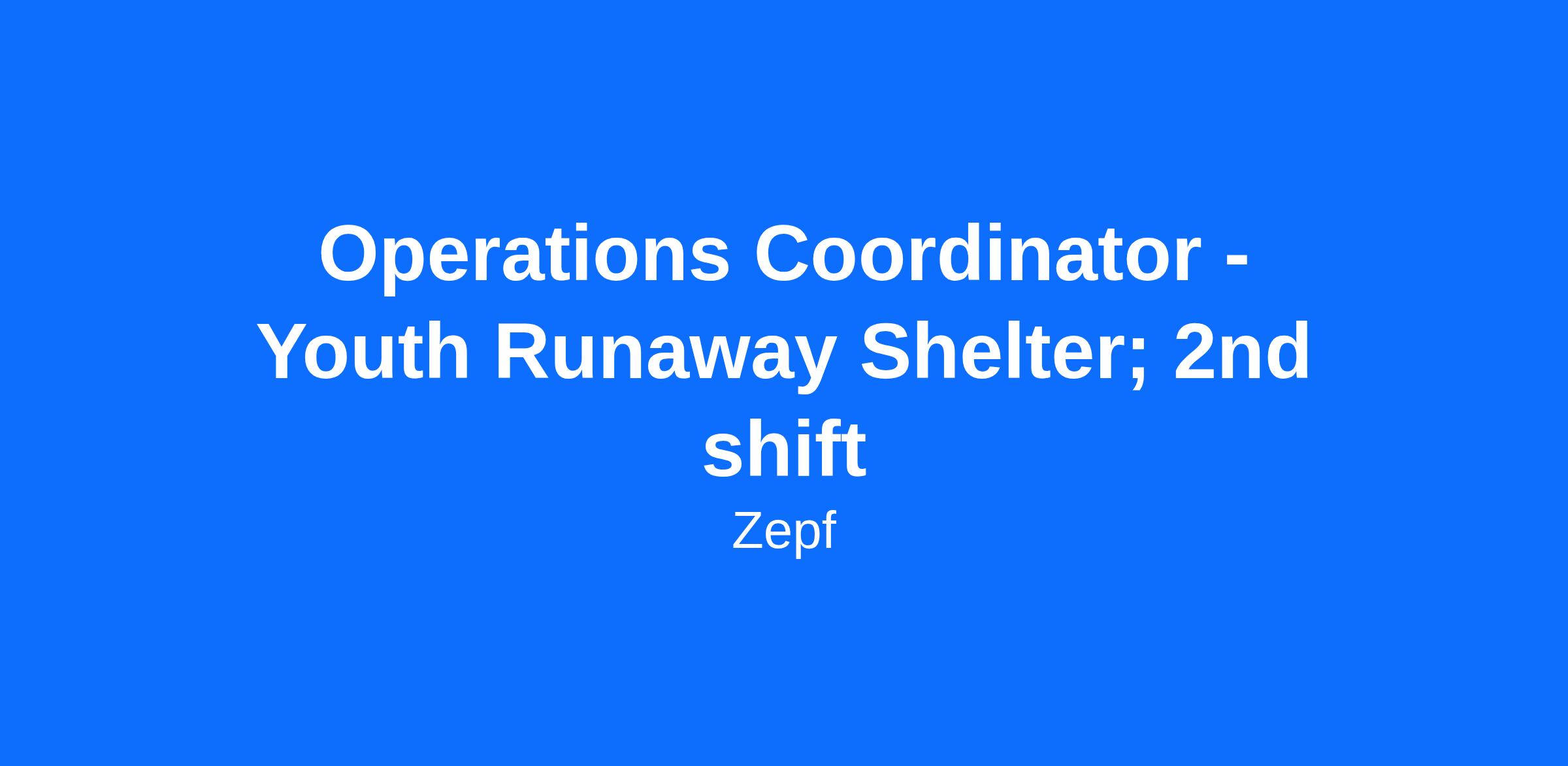 We are currently seeking a full-time, second shift Shelter Operations Coordinator for our youth homeless and runaway shelter to provide oversight for the general operations of the program. The purpose of the Shelter Operations Coordinator is to be responsible for general operations, direct oversight of residential specialists, administrative duties, and management of data entry for runaway and homeless youth services. The operations coordinator is also responsible for assisting with hiring, training, and performance evaluation of program staff, including termination of staff, where appropriate. This position will require a comprehensive understanding of cultural and linguistic competencies around working with youth, families, systems, and people of color, LGBTQ, or from diverse backgrounds. This position also requires to be available on weekends as needed and being on the supervisor on-call monthly rotation.