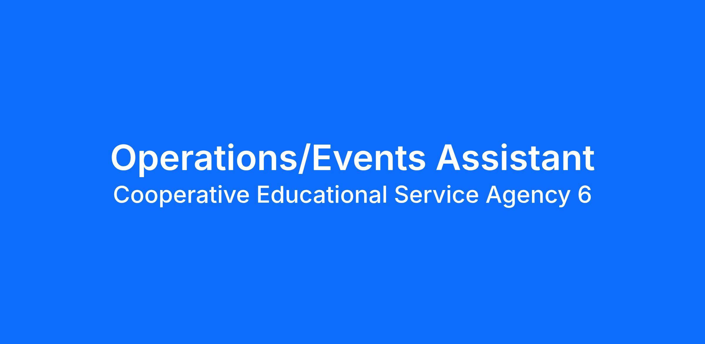 The Operations/Events Assistant is crucial in assisting the Operations Support Services Department in delivering high-quality events and ensuring all client interactions with CESA 6 are positive and supporting overall agency operations.